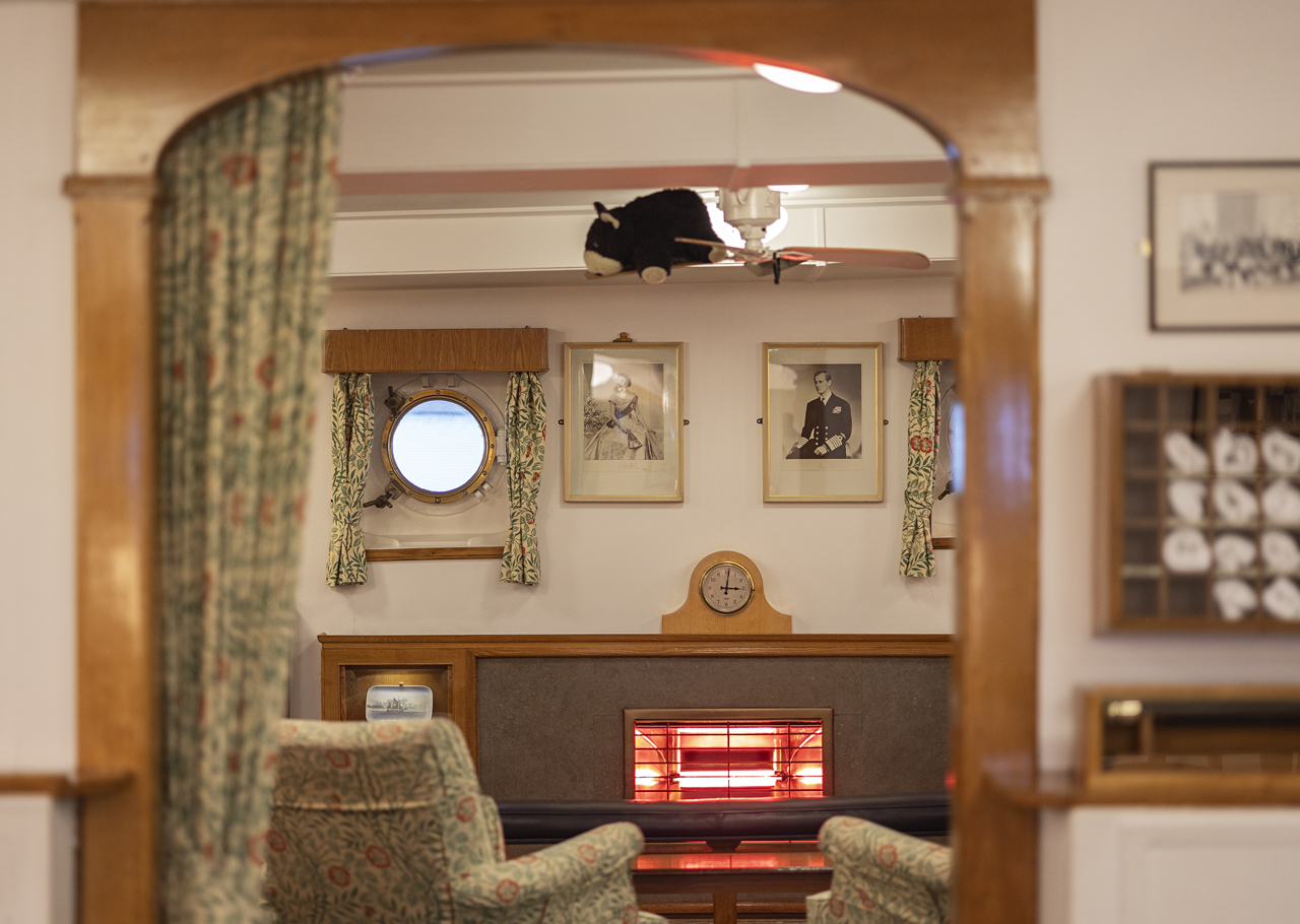 The Wardroom Anteroom was the Officer's main recreational space. A game they enjoyed playing here was 'Wombat Tennis', which involved two teams and a soft toy wombat that was thrown up into the ceiling fan.