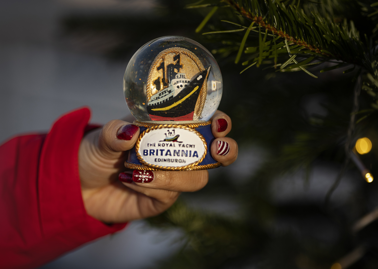 Take home a memento of your visit to the Royal Yacht with this sparkling snow globe, available to purchase from the Gift Shop.
