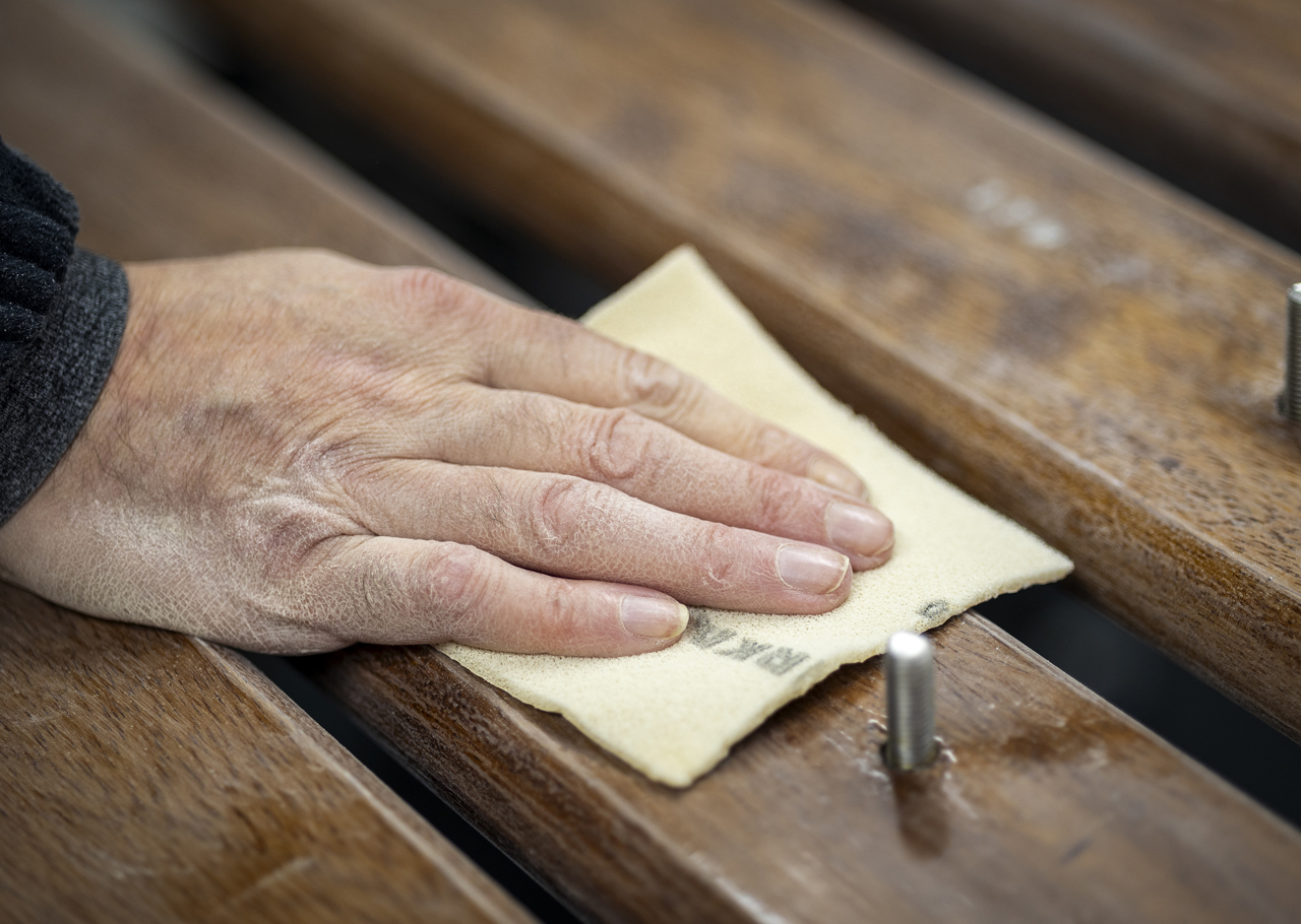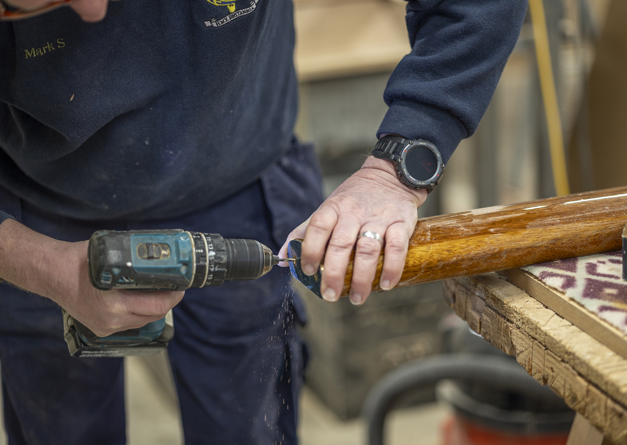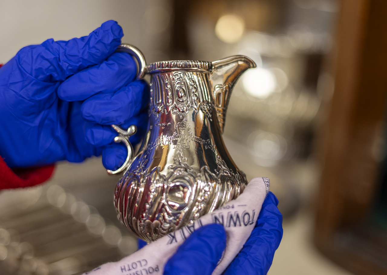 Renata, Housekeeper, polishing items in the Silver Pantry. During service, every single item was polished daily.