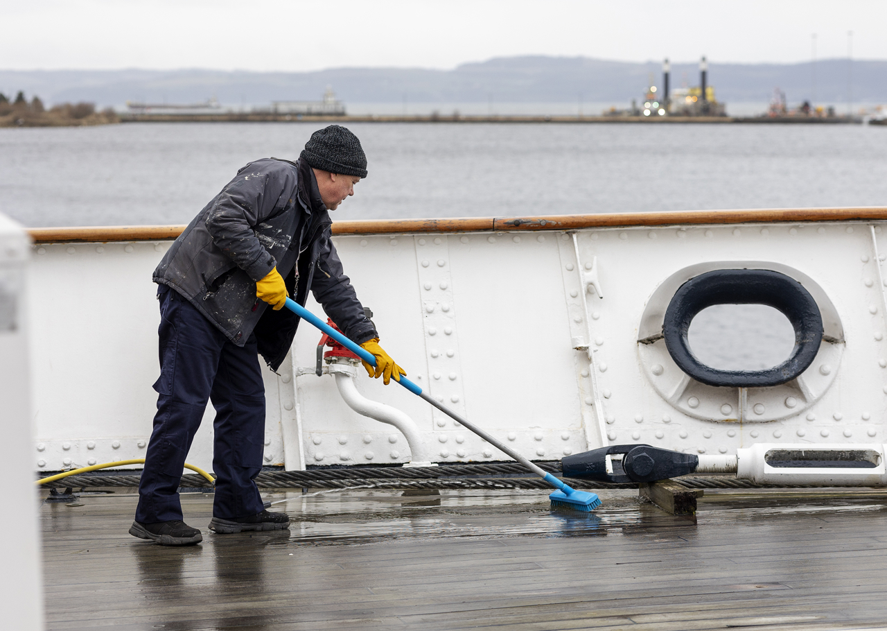 Agnes, Visitor Assistant, delights in greeting guests to The Royal Yacht Britannia and sharing fascinating tales of Royal life at sea.