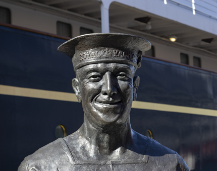 Spring sun shining on our statue of longest serving Royal Yachtsman, Ellis 'Norrie' Norrell MVO RVM.