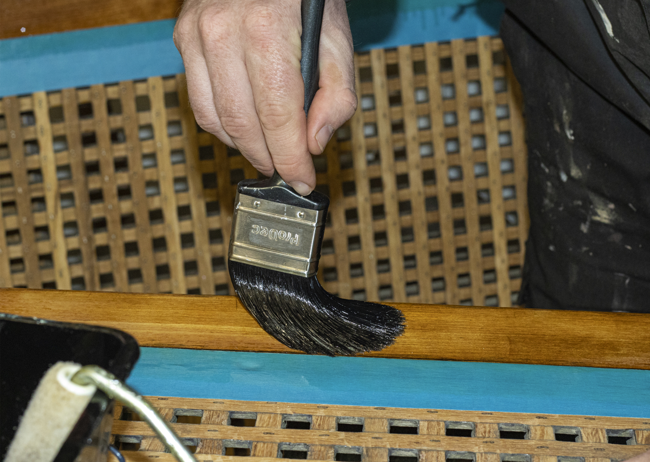 In the State Drawing Room, Renata, Housekeeper, ensuring that standards are kept as high as when the Royal Family were residing aboard.