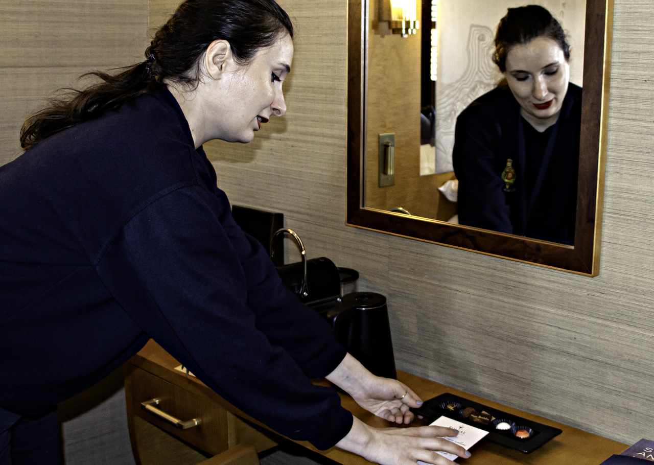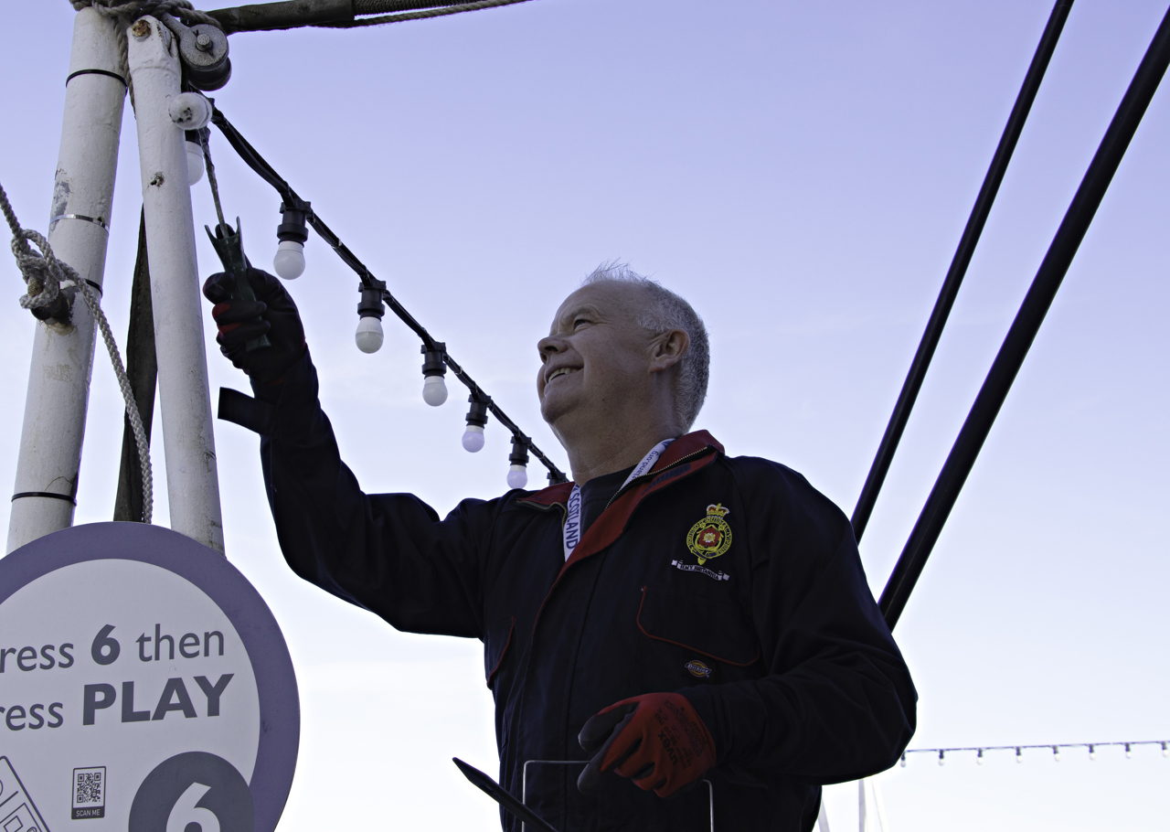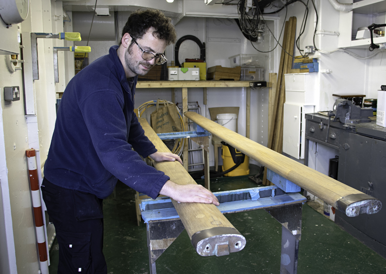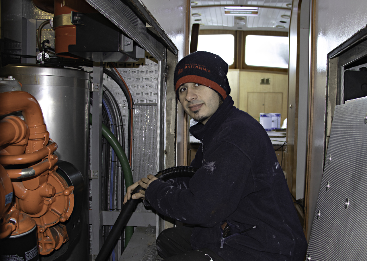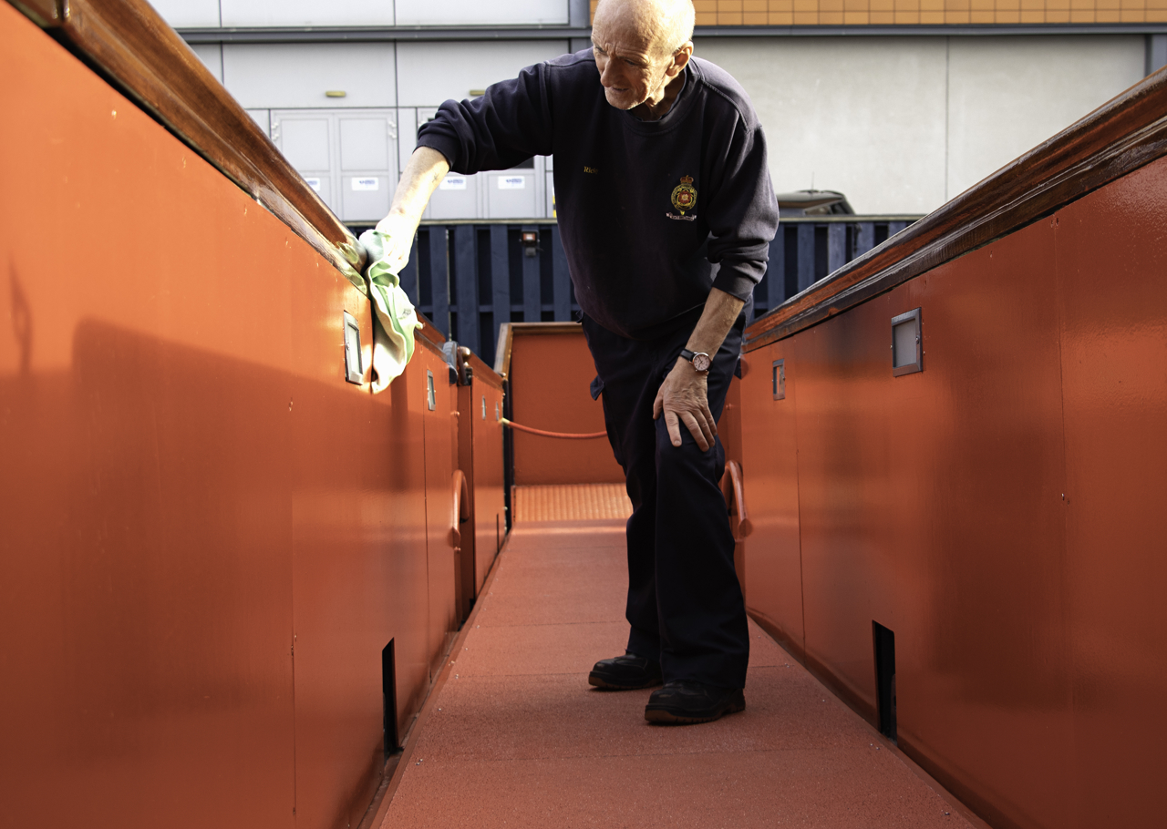 Ricky, Senior Facilities Officer, readying the Royal Brow for guests. The Royal Brow was exclusively used by the Royal Family and their guests for entry aboard Britannia.