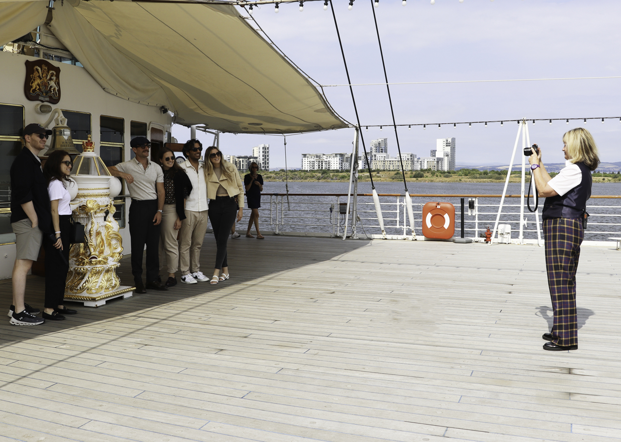 Views can be seen across the Port of Leith and Firth of Forth from the decks of Britannia.