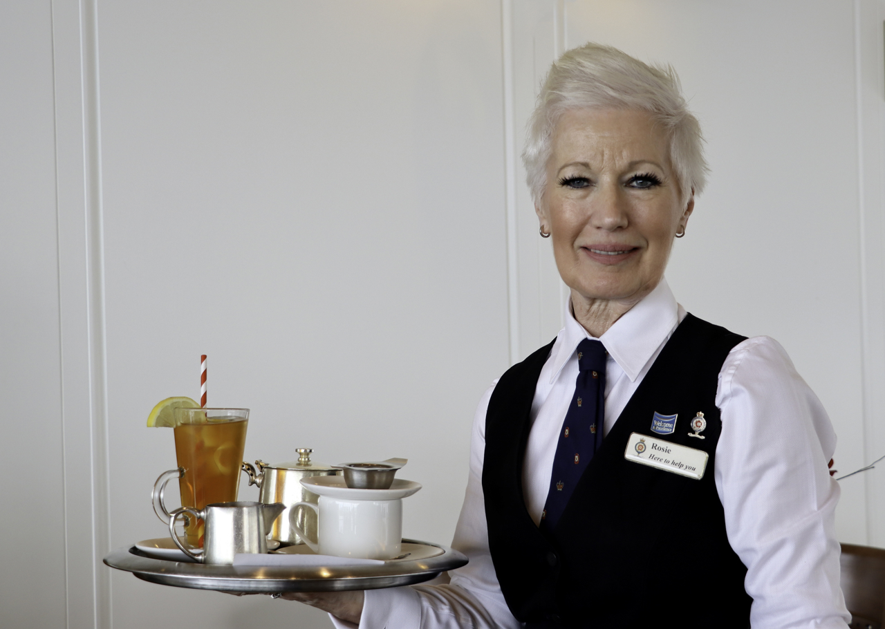 Rosie, Waiter, ready to serve a selection of drinks in the Royal Deck Tea Room.
