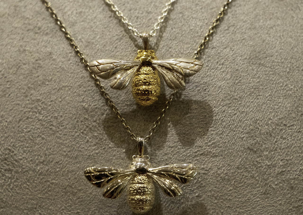 In the Gift Shop, we feature these beautiful bee necklaces by Reeves and Reeves.