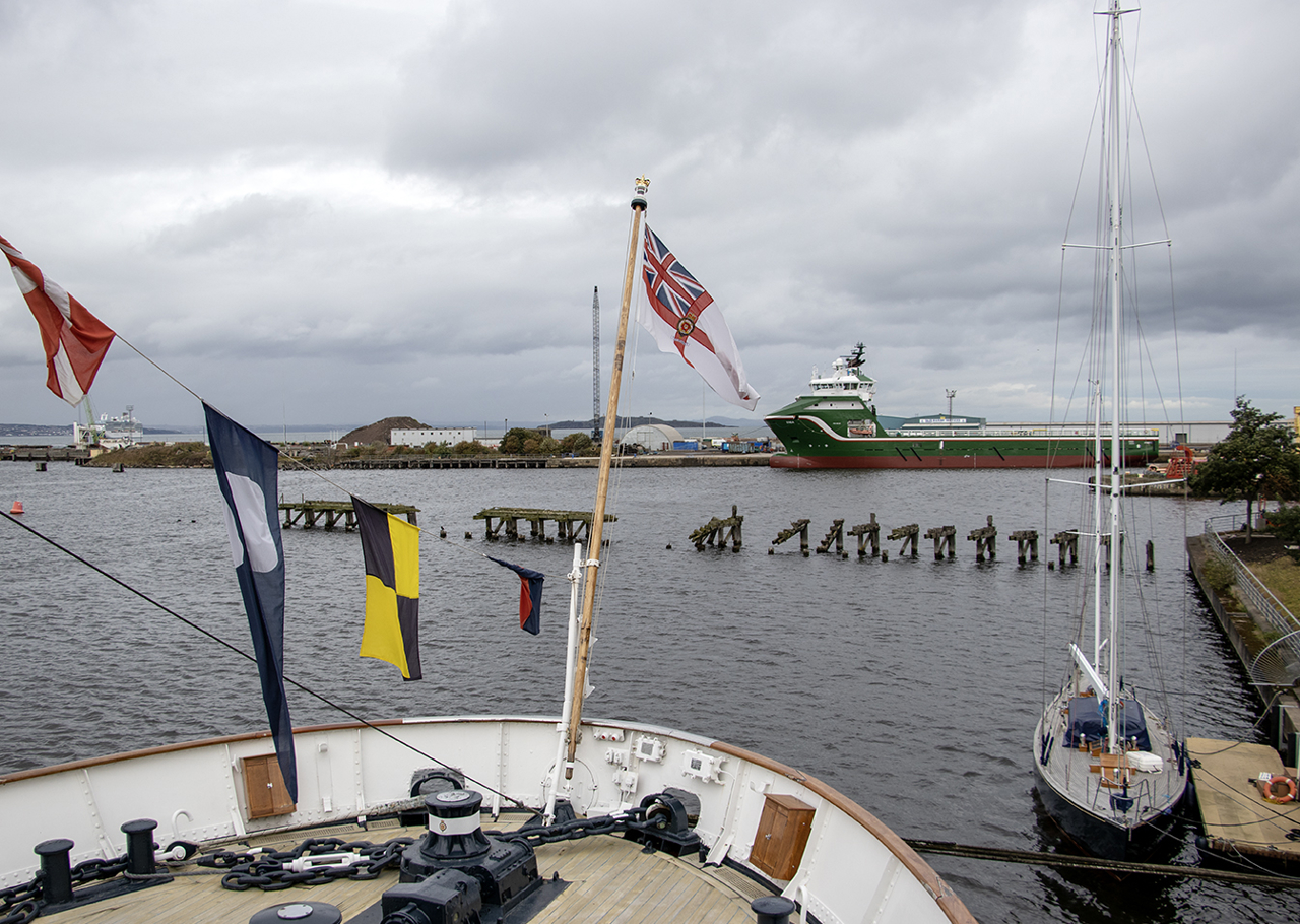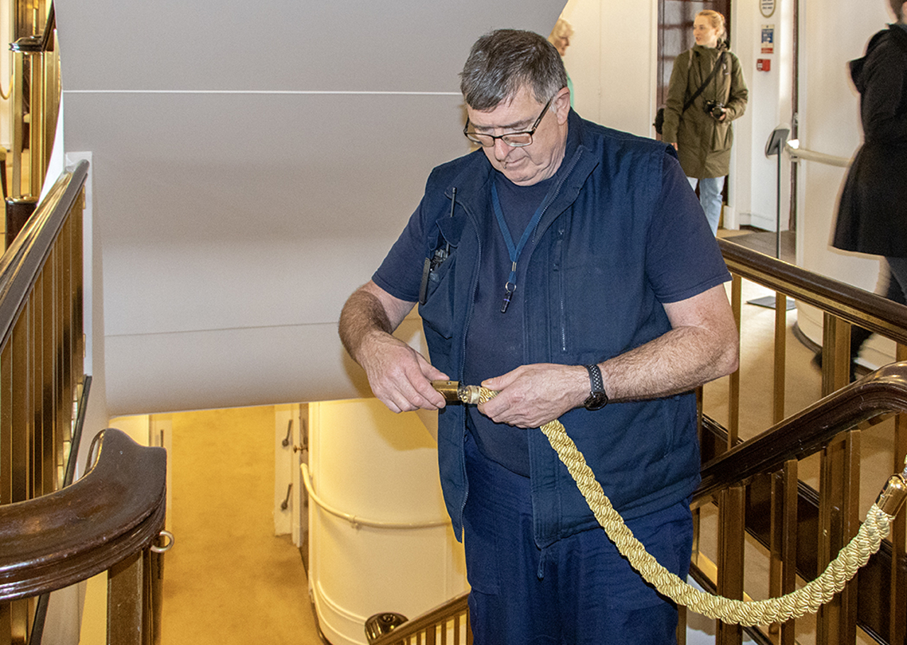 All of the clocks on board are stopped at 3.01pm, the time which Queen Elizabeth II was piped ashore for the final time.