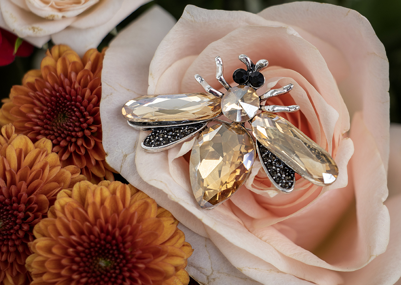 Elevate any outfit with a dazzling, statement bee brooch, which can be purchased from Britannia's Shop.