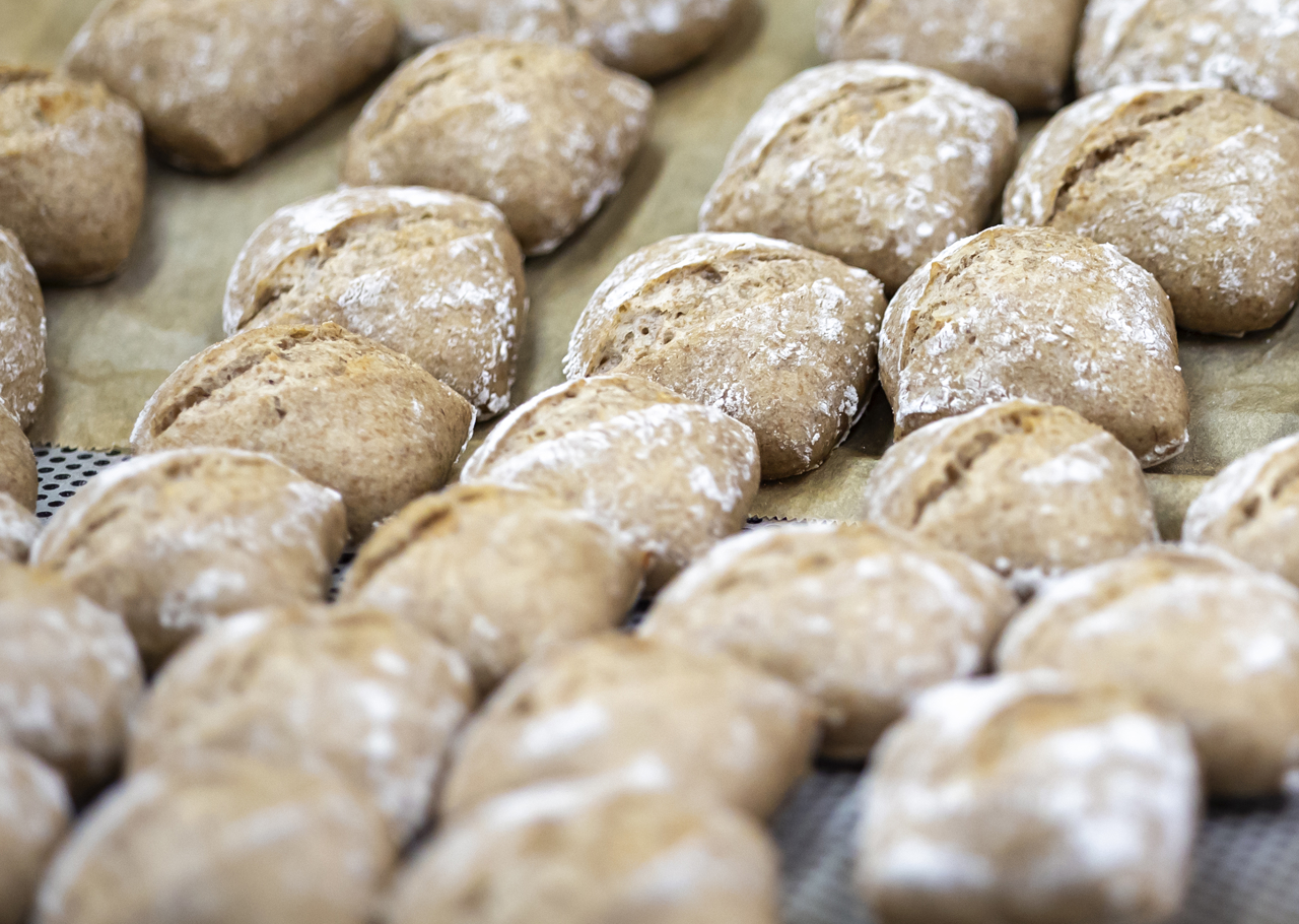 The finished crusty bread rolls, ready for an evening event.