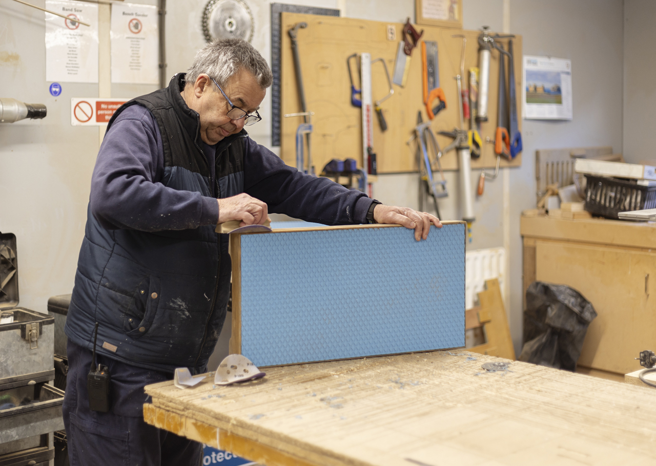Gary making a step for the Officers' Fast Motor Launch in the Workshop.