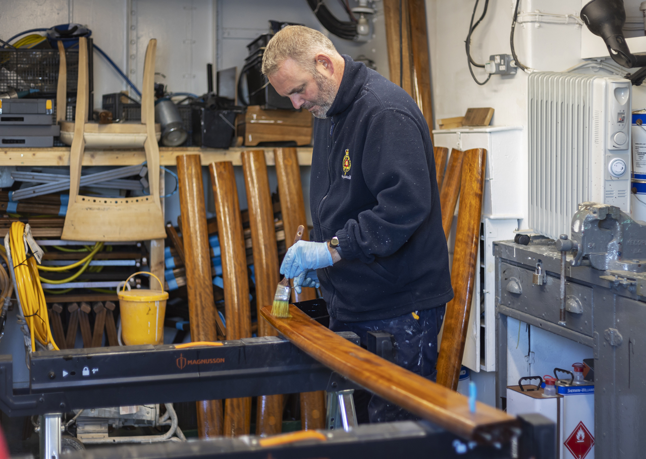Jos varnishing handrails for Fingal.