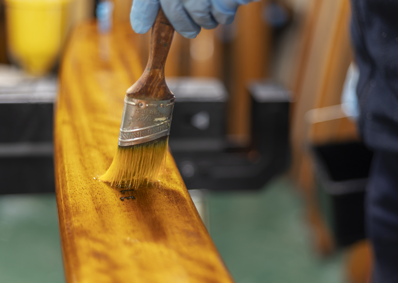 A close up look at the varnishing process.