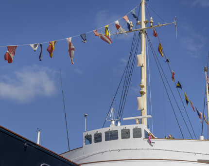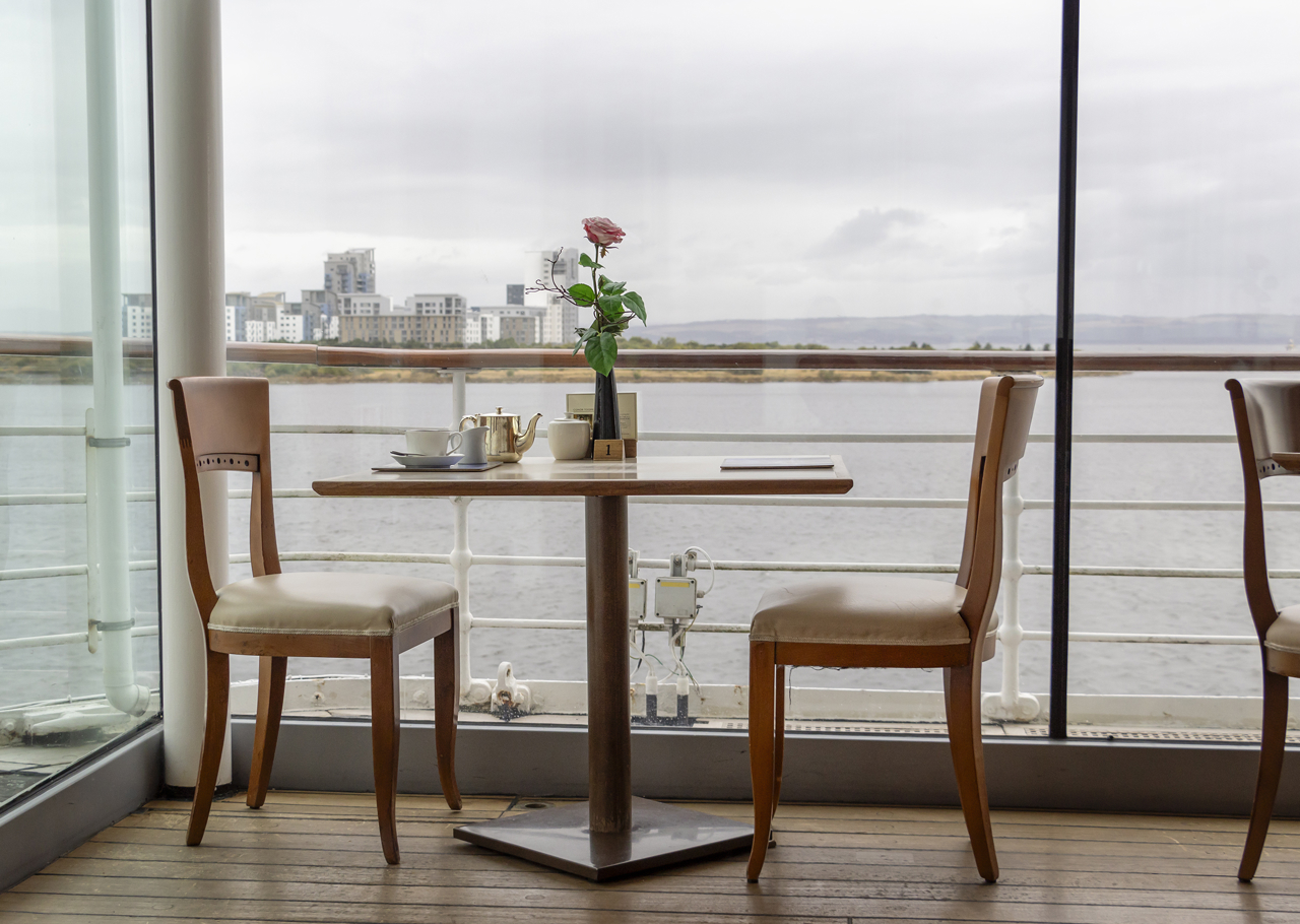 Relax with waterfront views while enjoying a delicious lunch or cream tea in the Royal Deck Tearoom, a wonderful setting aboard Britannia.