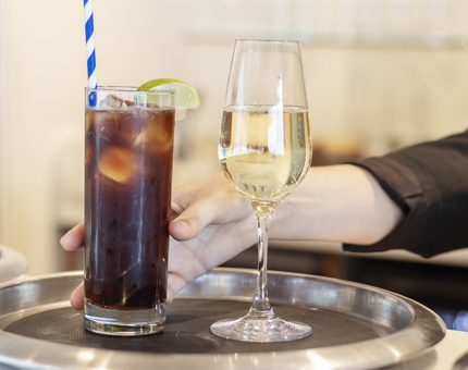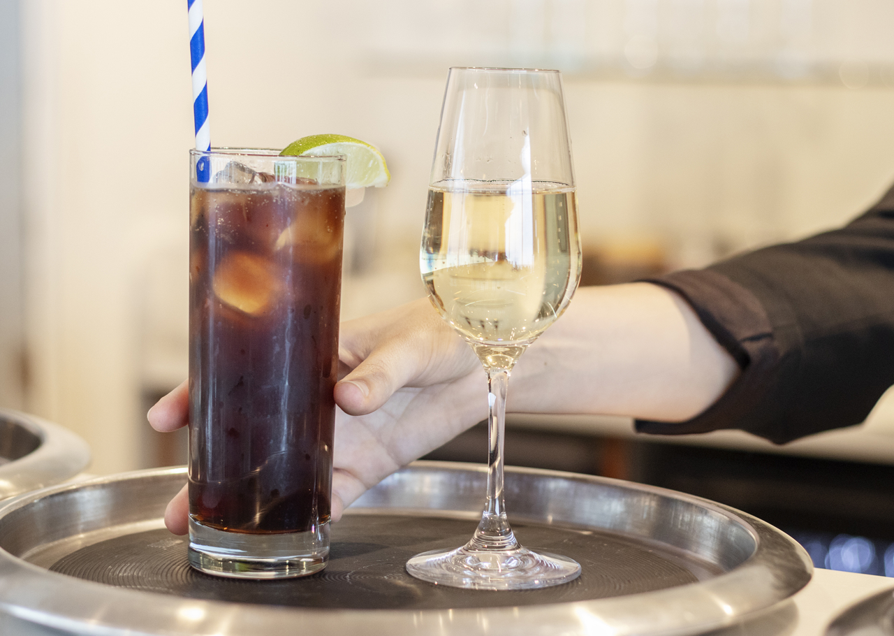 Martina, Food and Beverage Supervisor, serving drinks including a Cuba Libre, made from local Leith Rum.