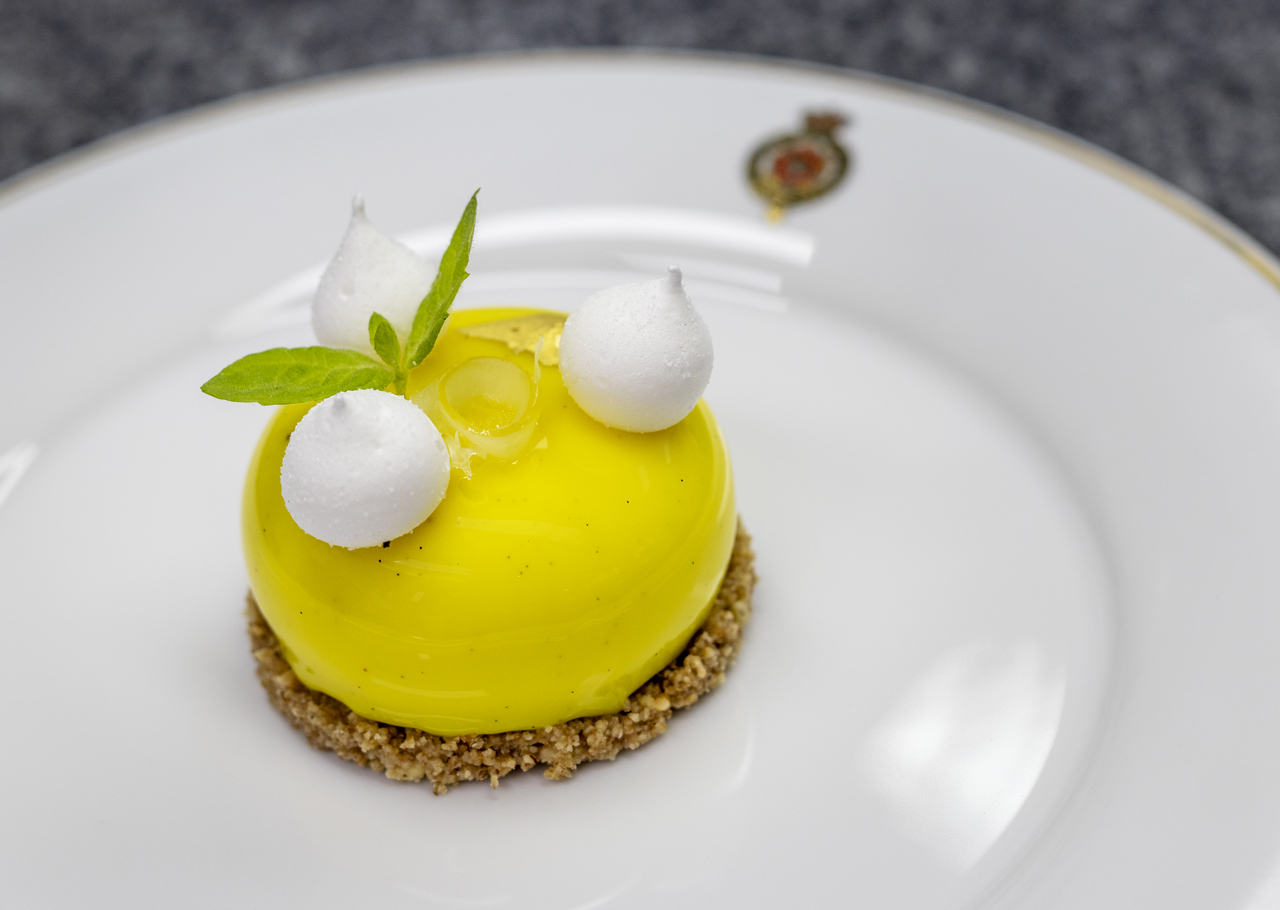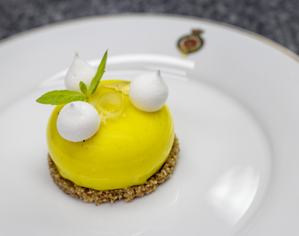 A delectable lemon cheesecake, created by the talented Galley team, adds a touch of sweetness to an unforgettable, exclusive evening event aboard Britannia.