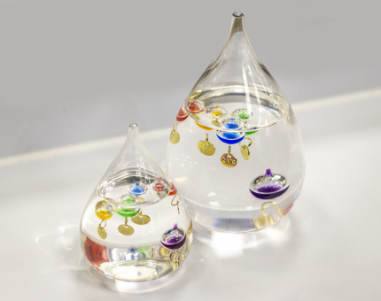 A practical and stylish gift, these Galileo thermometers will tell the temperature of the room. Purchase from our Gift Shop.
