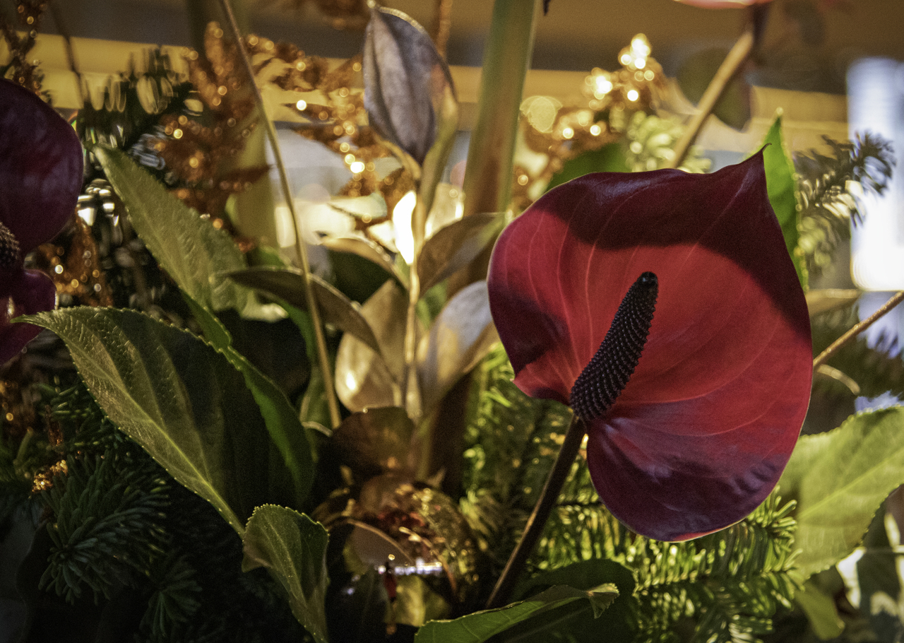 A seasonal display of crimson red anthurium flowers brighten the shortest day of the year on board Fingal.