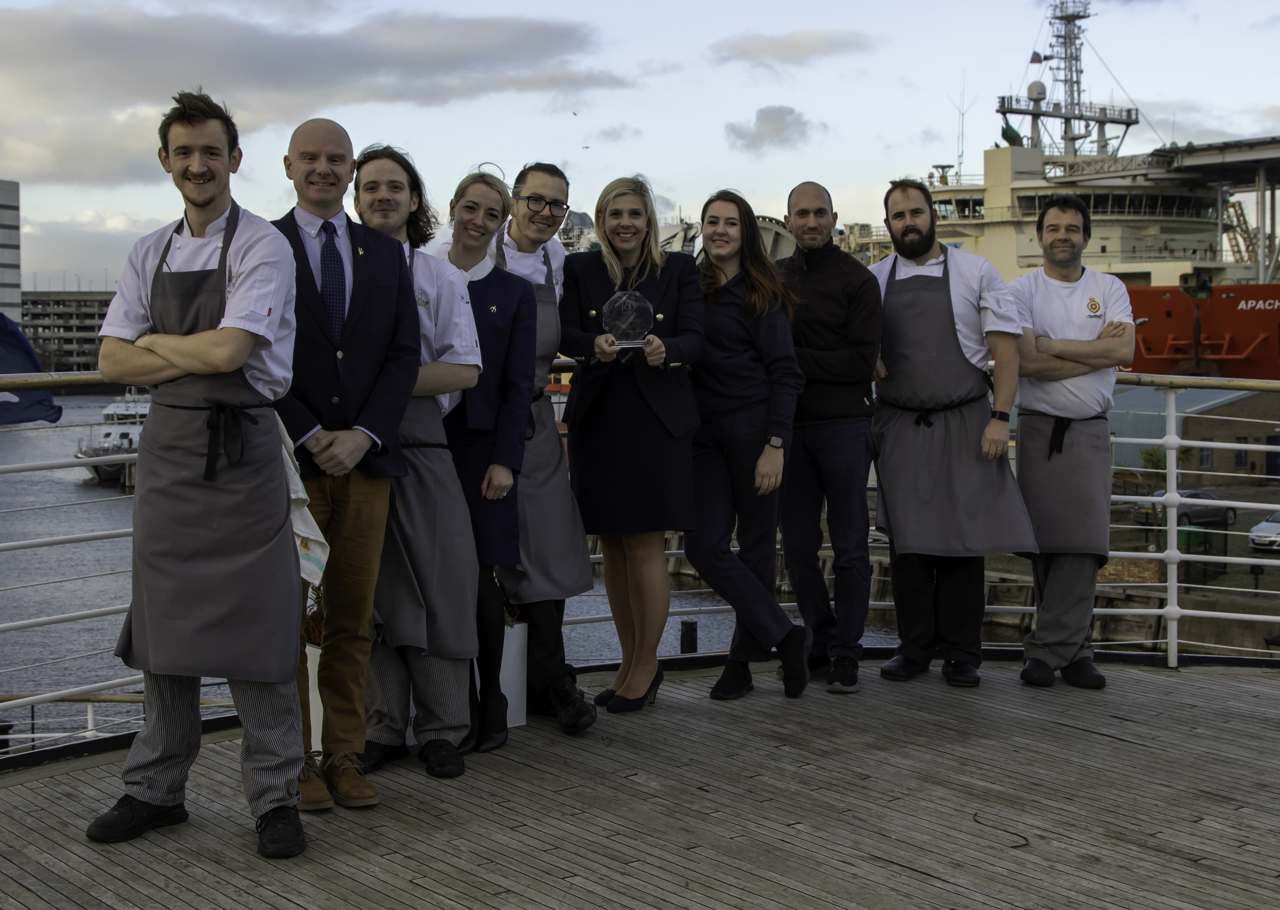 Britannia's Chief Executive Bob Downie, was preparing delicious smoked paprika potato wedges in the onboard Galley this week in the annual department job swap during Christmas week.