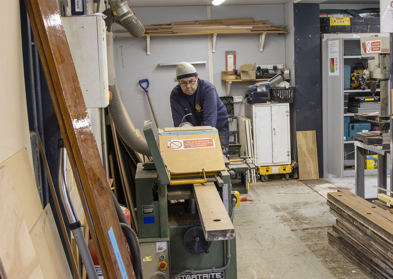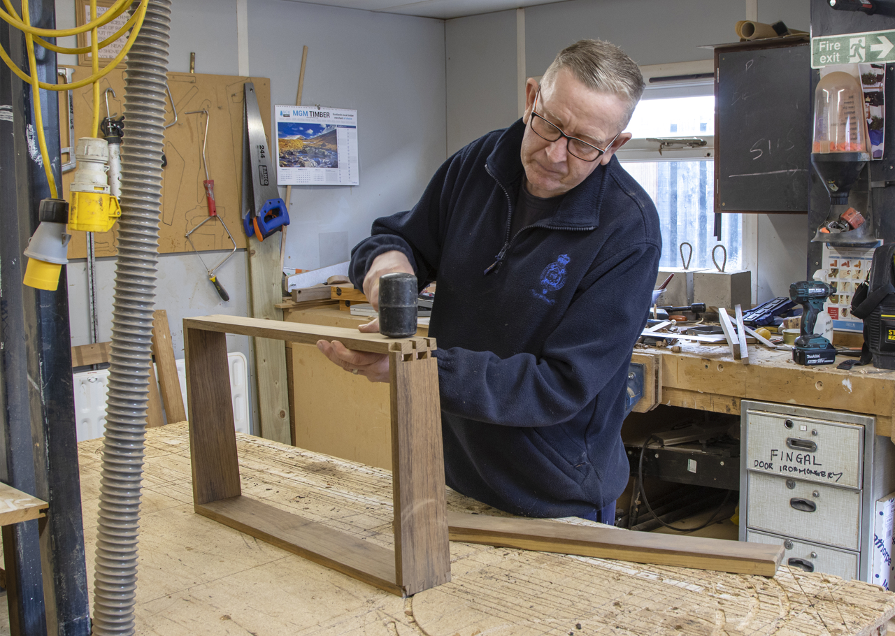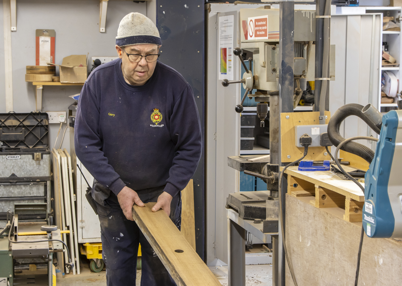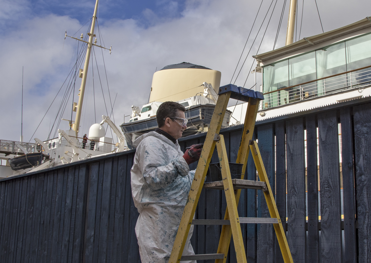 Facilities Officer, Andy, painting the outside fence within the compound surrounding Britannia at the Quayside.