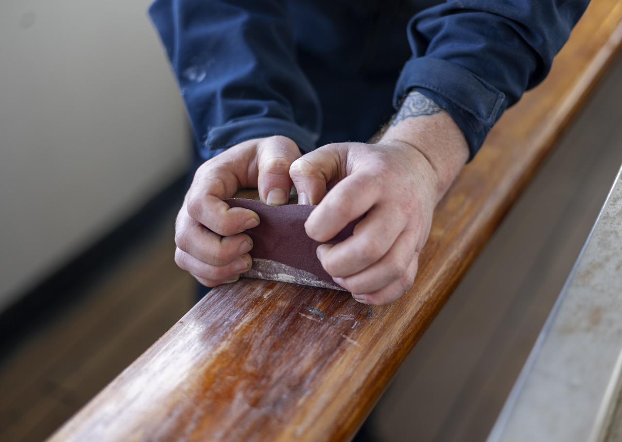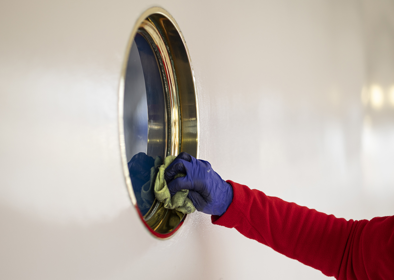 Renata, Housekeeper, polishing in the Silver Pantry. While Britannia was in service, every single item had to be polished daily.