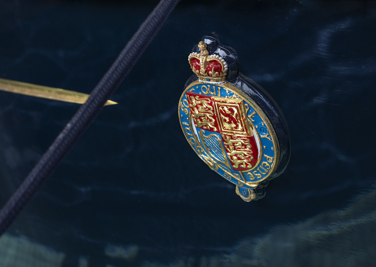 A crest detail adorns the Royal Barge, which Queen Elizabeth II and Prince Philip used for travelling ashore from Britannia.