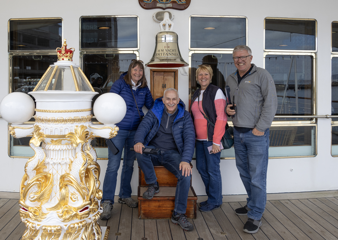 Visitors to The Royal Yacht Britannia exploring the history of the ship by the iconic bell and compass binnacle.
