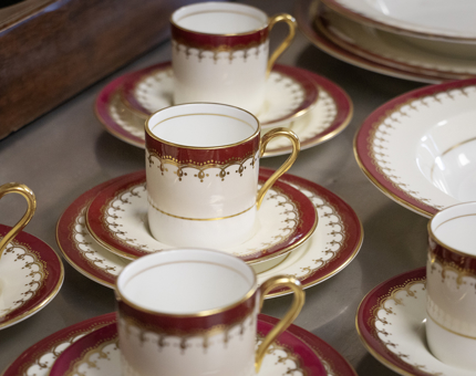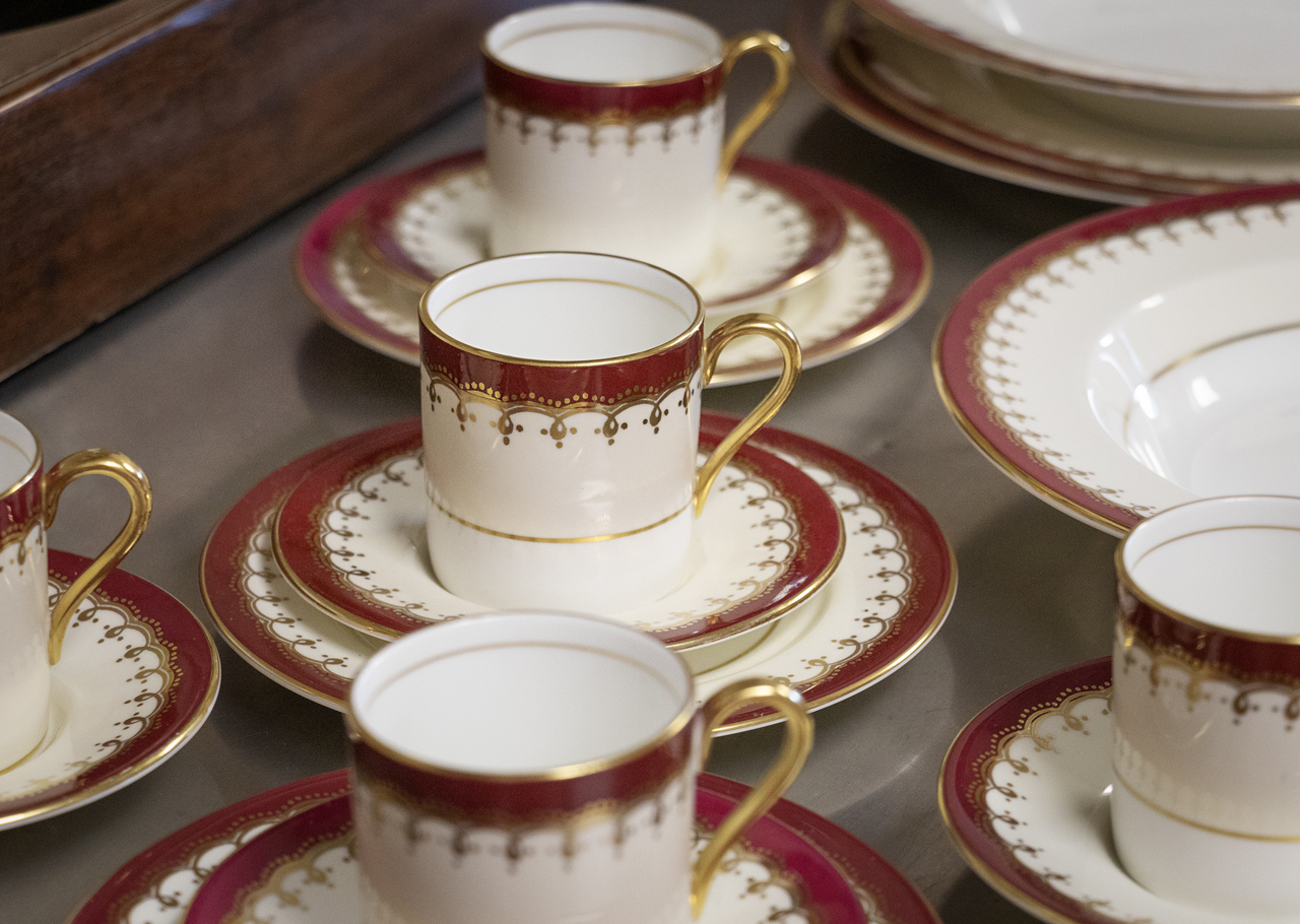 Exquisite china from the China Pantry, which was meticulously polished each day during Royal service, to uphold the highest standards.