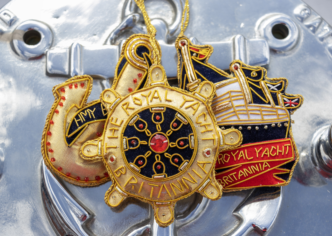 Embroidered hanging decorations make a beautiful gift or cherished memento of a visit aboard The Royal Yacht Britannia and can be found in the Gift Shop.
