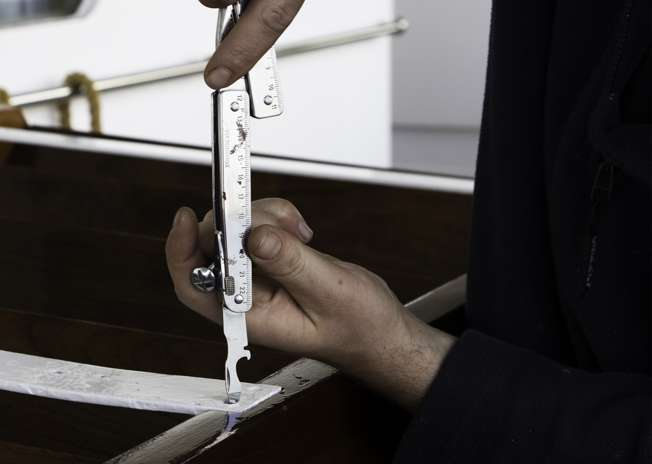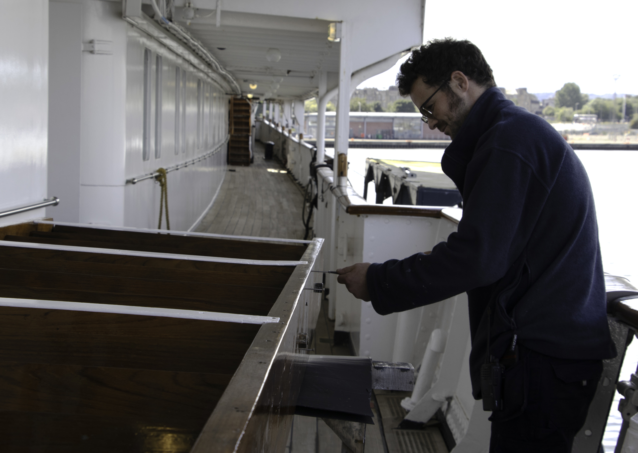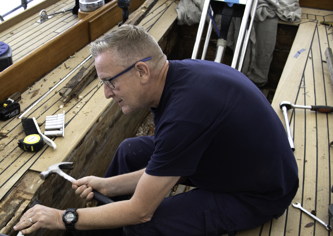 Mark removes the cross travellers' support on 1930s Royal Racing Yacht, Bloodhound, one of Britannia’s stunning fleet.