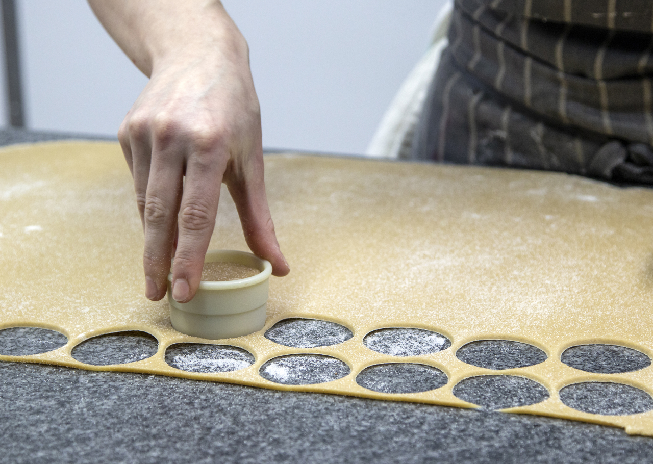 Demi Chef de Partie, Amelia, cutting out buckwheat sables for the apple cheesecake, one temptingly delicious treat from the Afternoon Tea menu at Fingal.