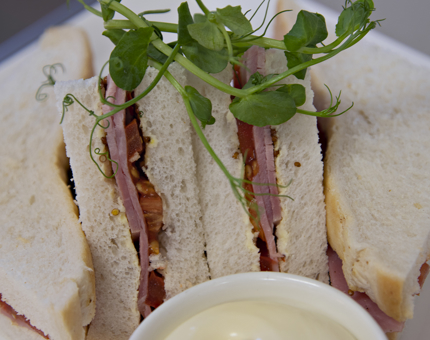 An Ayrshire honey roasted ham, tomato and mustard sandwich platter prepared in the original Galleys for visitors to the Tea Room.