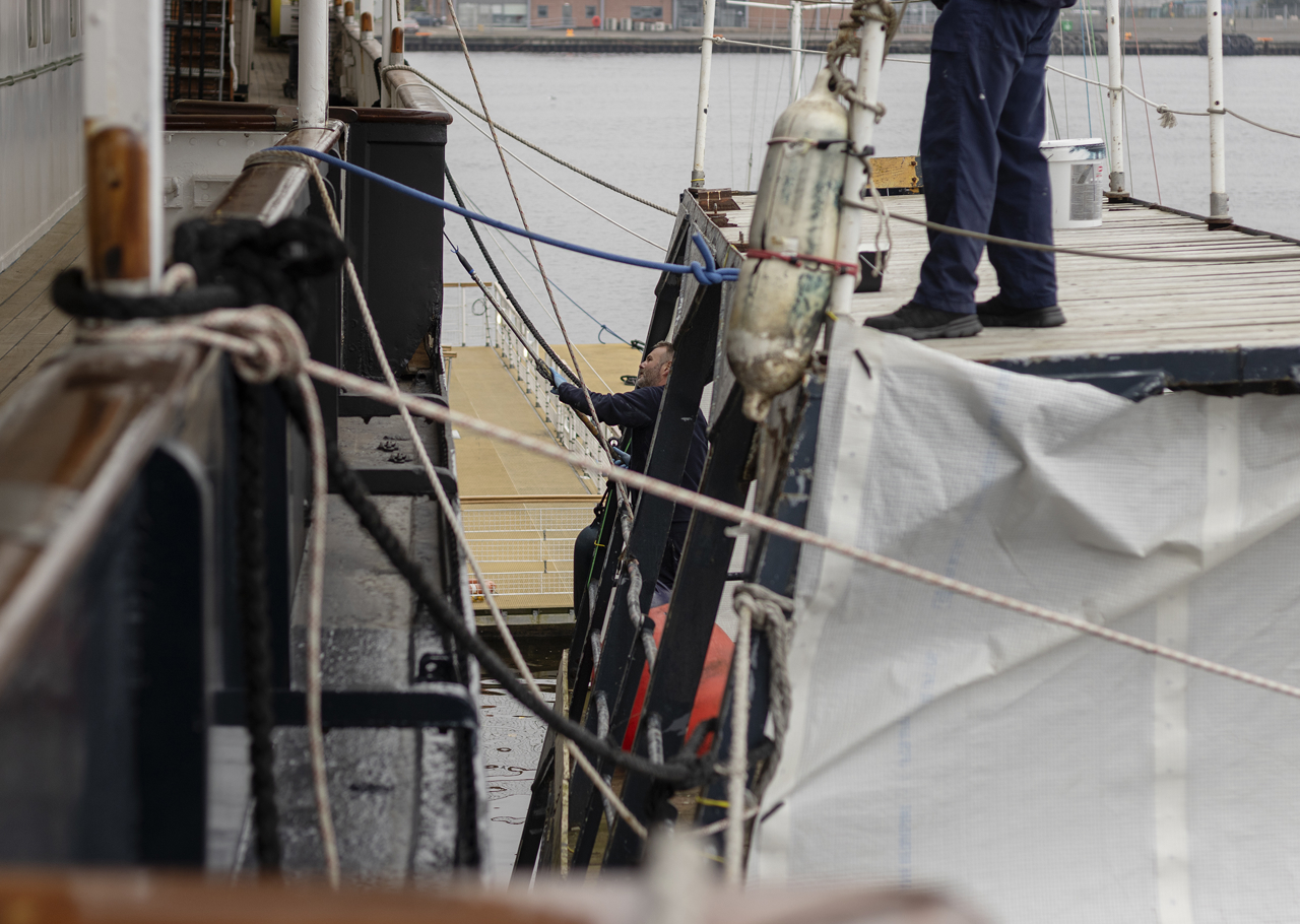 A favourite spot for visitors to take a photo is by The Royal Yacht Britannia's Bell and decorative compass binnacle.