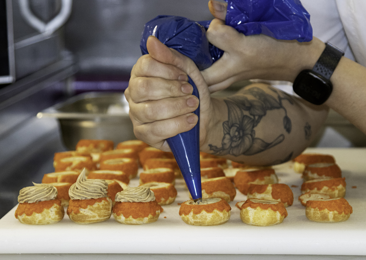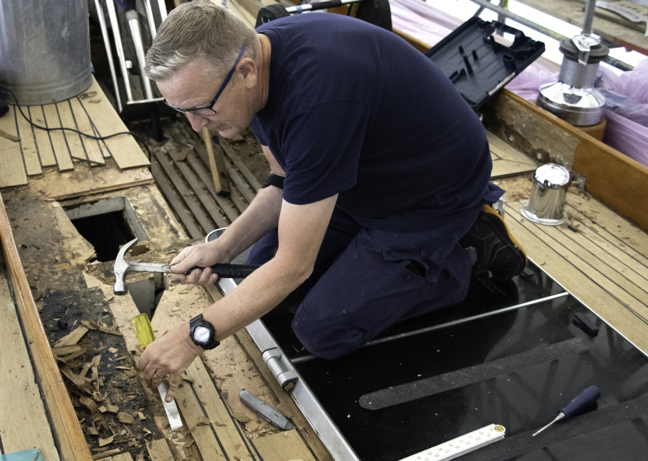 Tony removing the old flags from the dressing line and replacing with new flags, ready for next year.