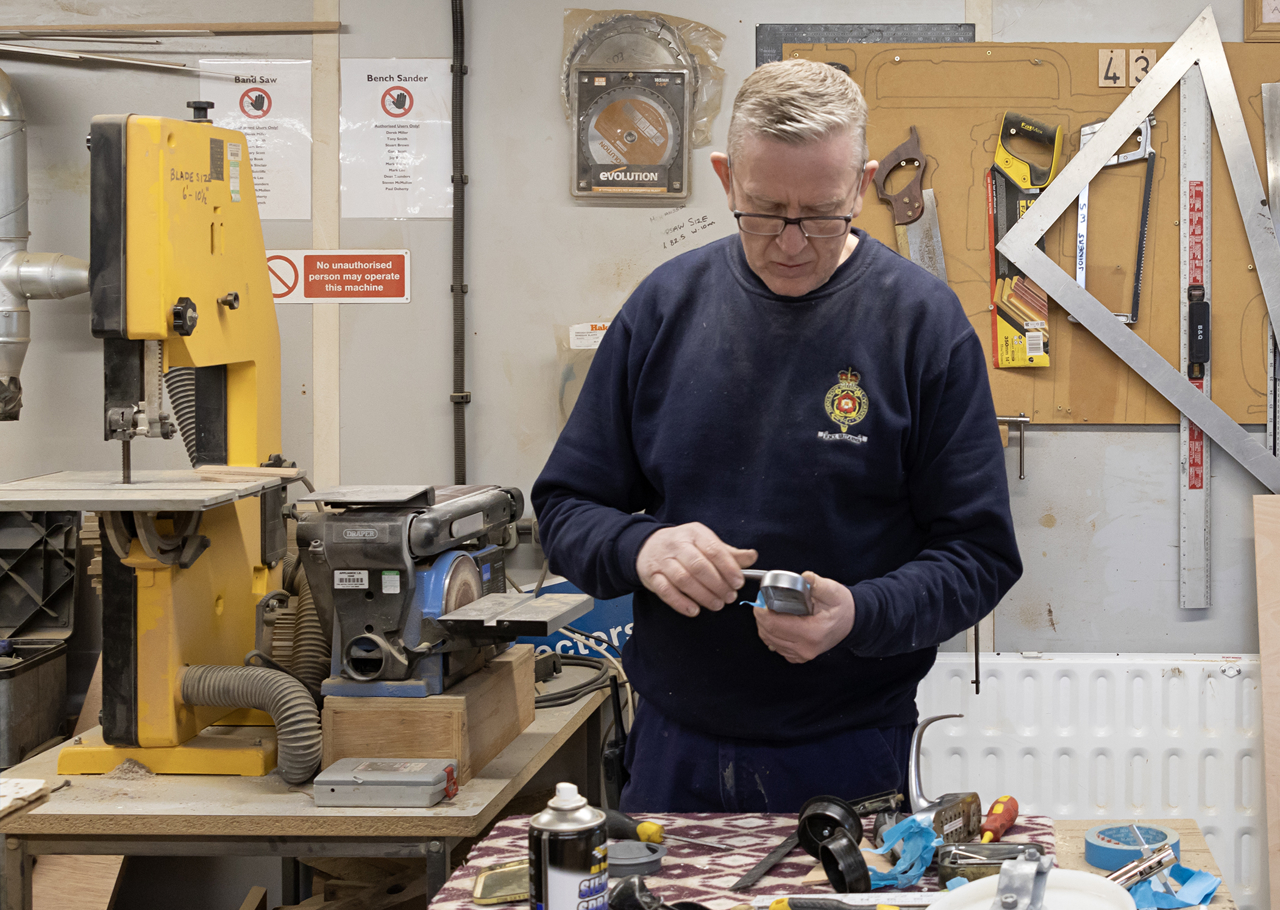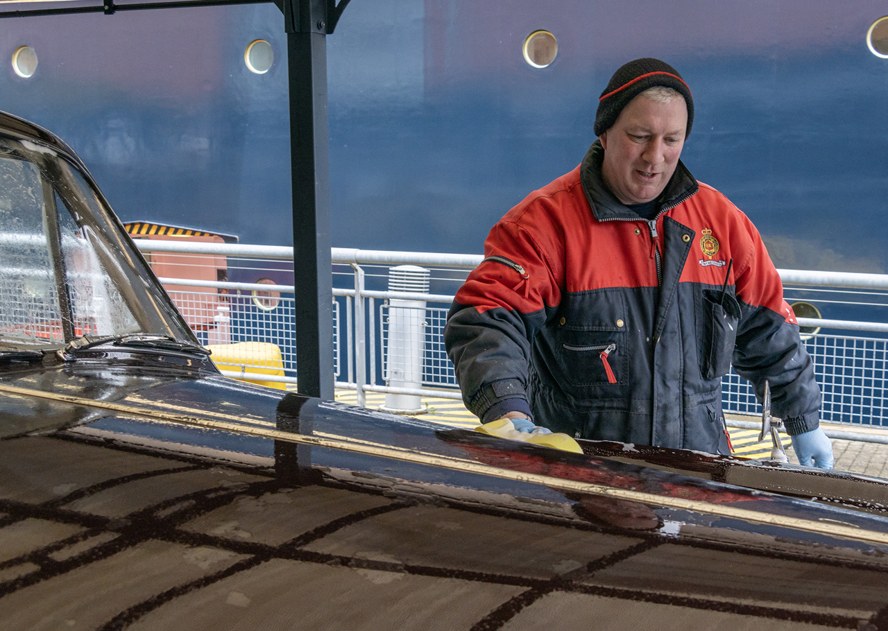 Paul, Facilities Officer, washing the beautiful Rolls-Royce Phantom V car. The Royal Family would take a car with them on State Visits.