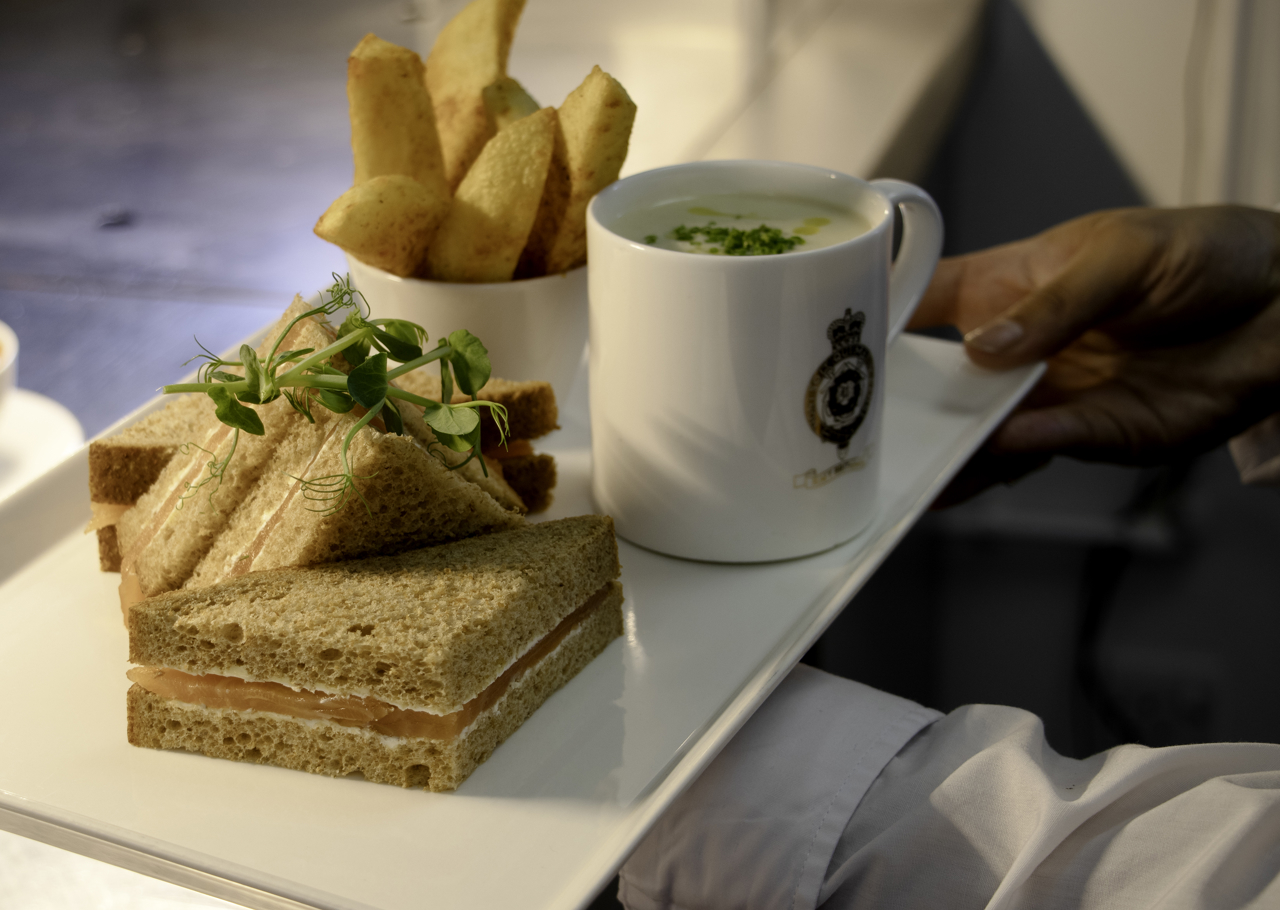 Enjoy our Britannia Special soup and sandwich platter in the Royal Deck Tea Room.