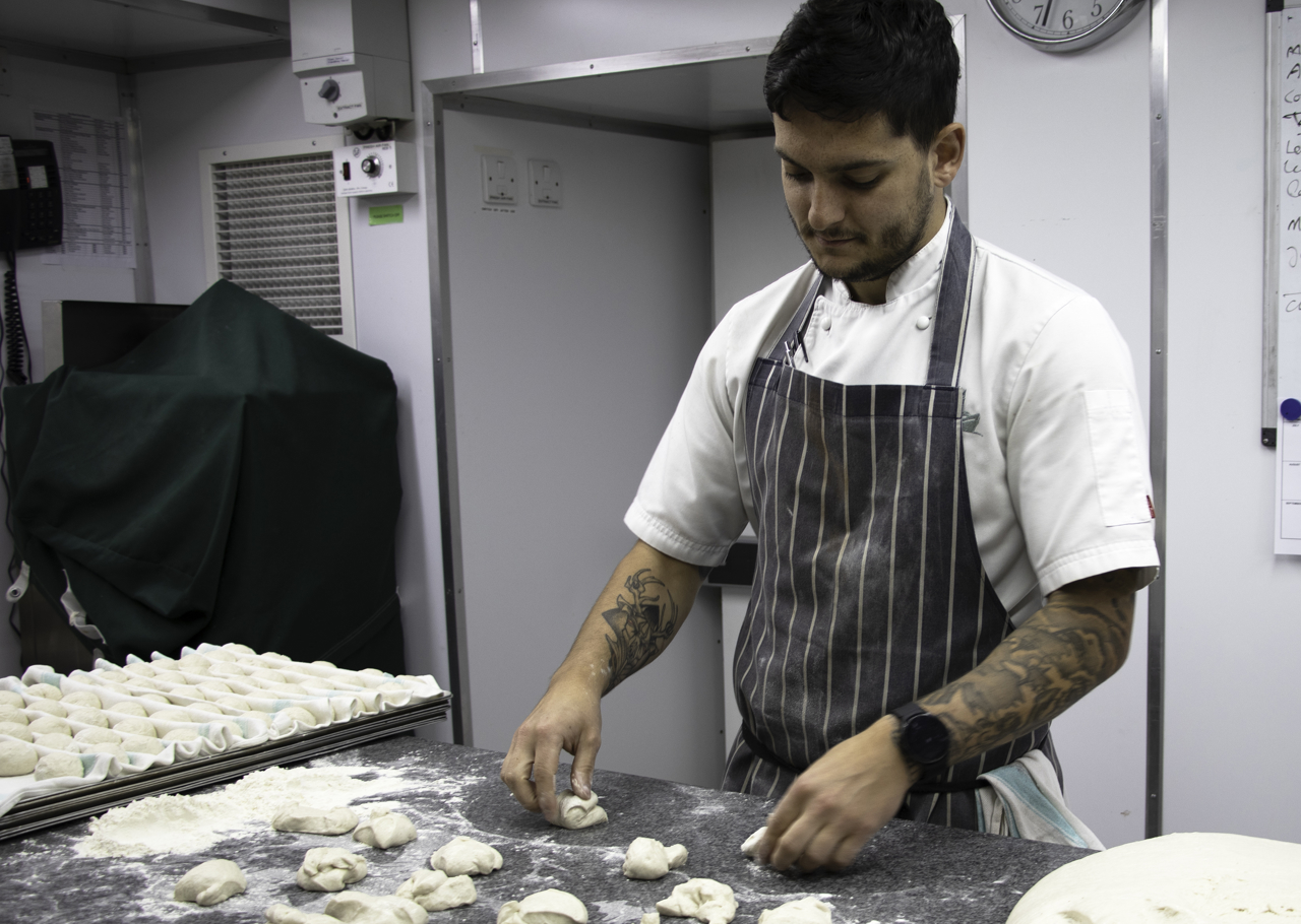 In the Galley, Bob, Junior Sous Chef, making bread rolls.