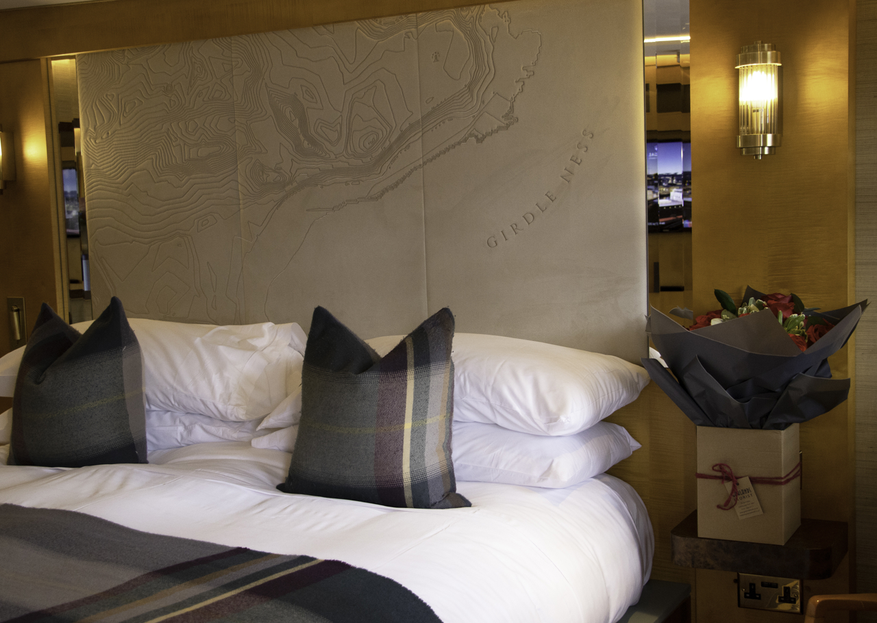 Each of Fingal's cabin headboards display the contour position of the Stevenson lighthouse that the cabin is named after.