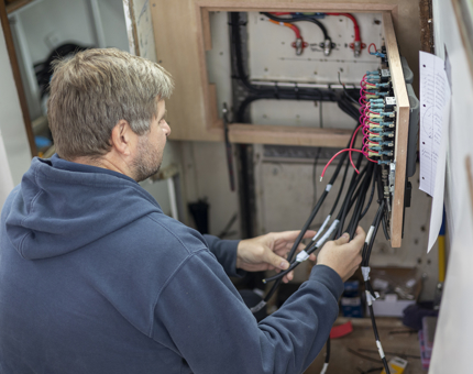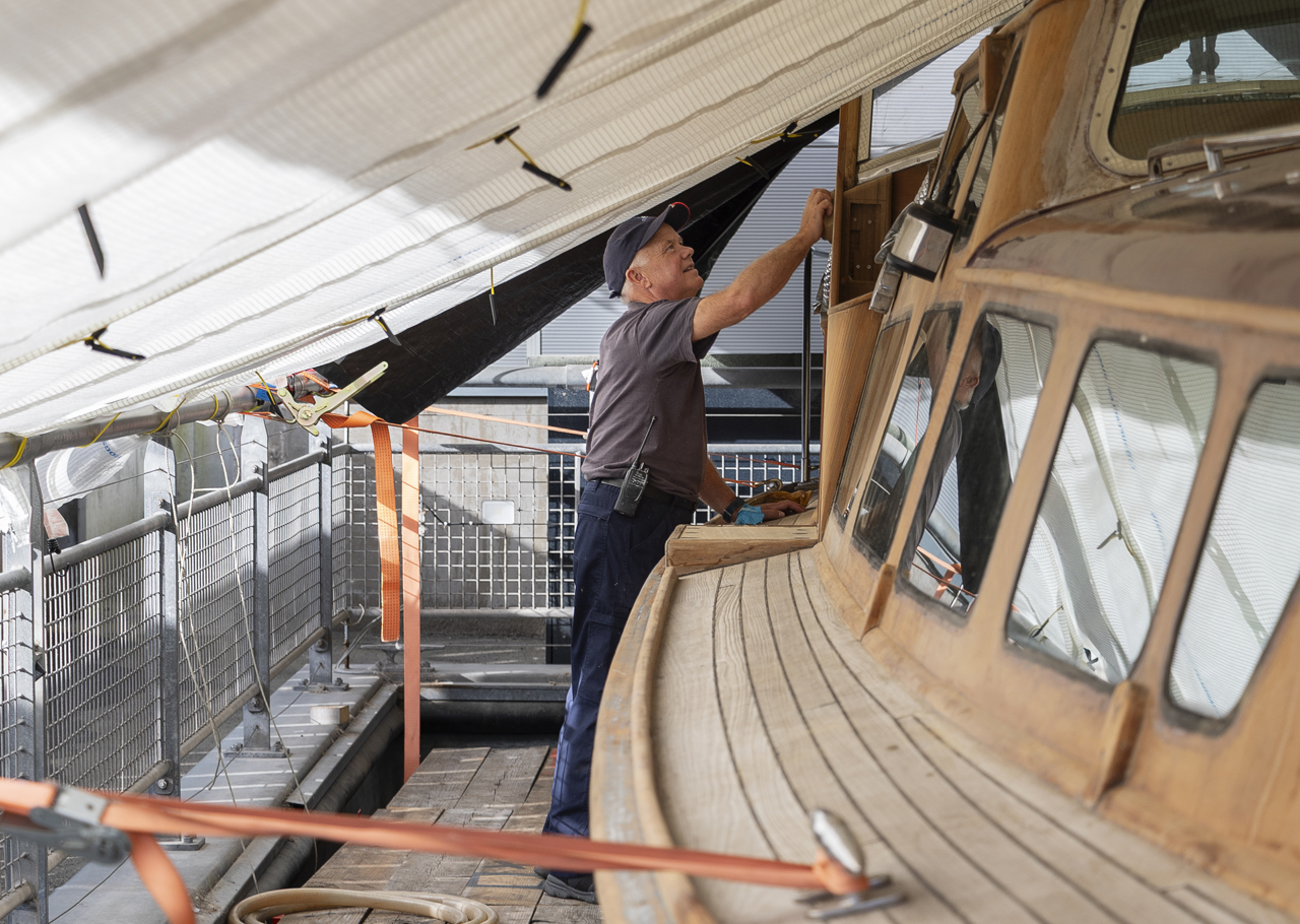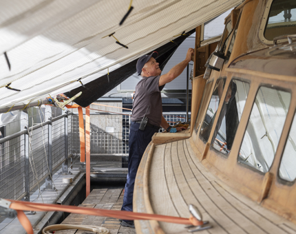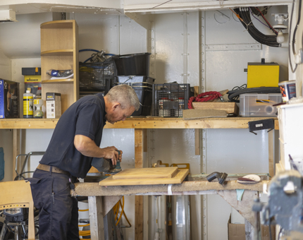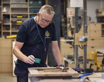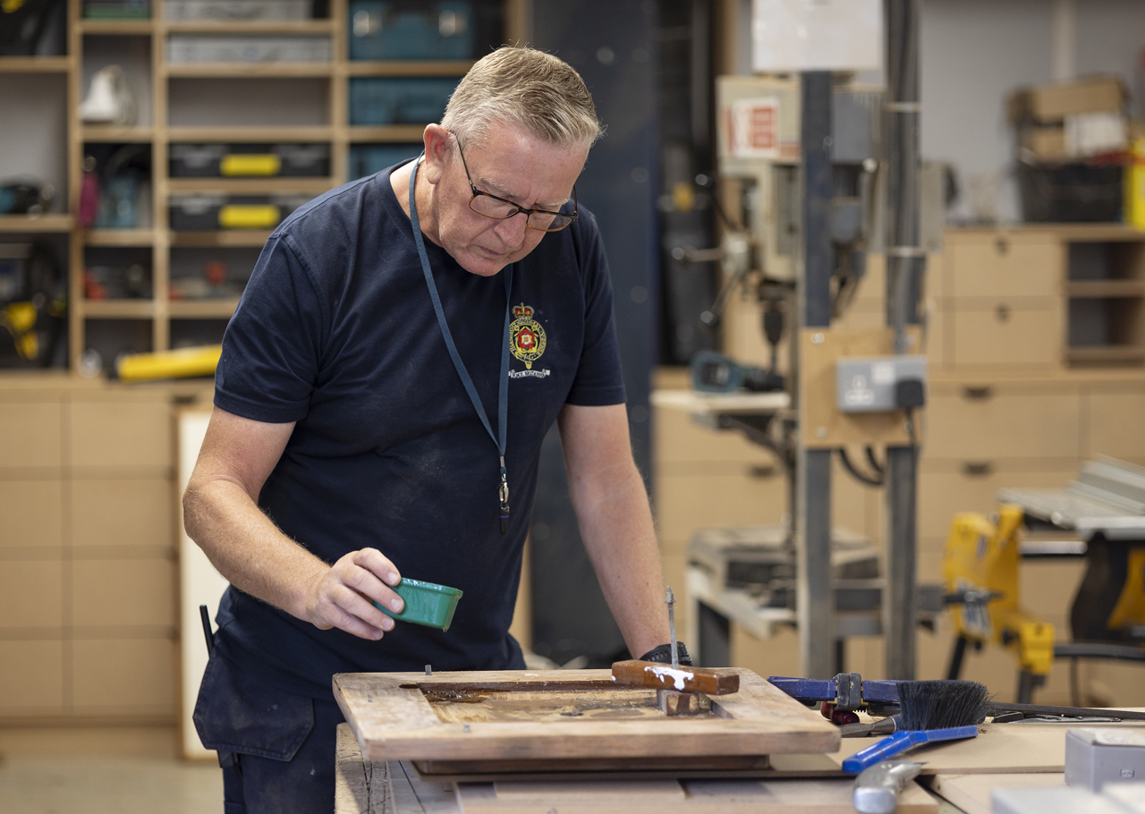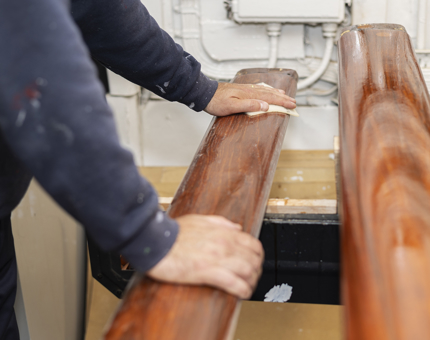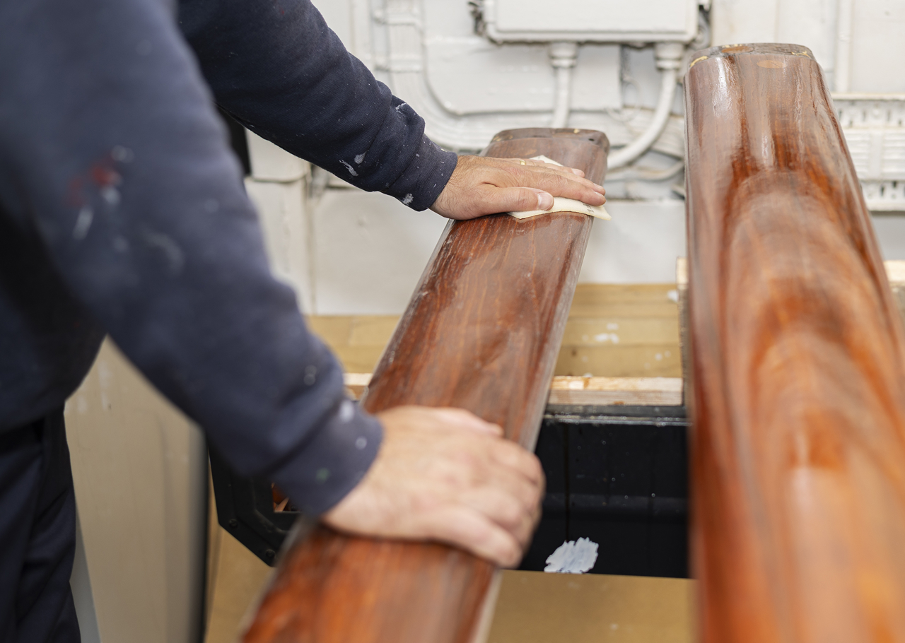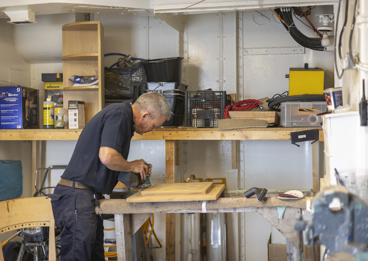 In the Maintenance workshop, Gavin creates a template for the Royal Brow, continuing the craftsmanship aboard.