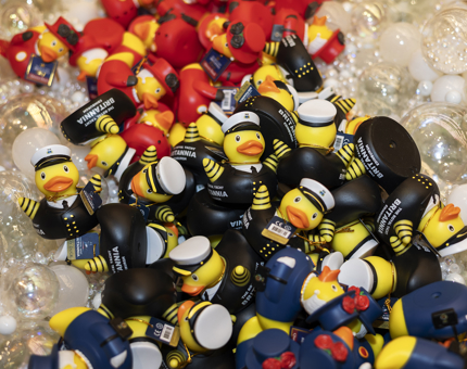 Visitors can choose from a delightful family of Britannia rubber ducks. Available to buy at the Ocean Terminal Shop or online.