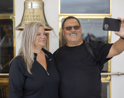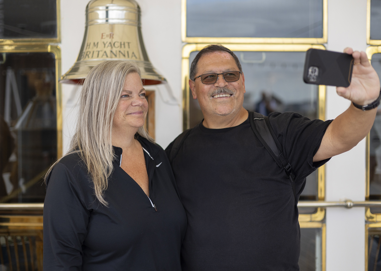 A joyful moment captured in a selfie in front of the iconic Bell on the Verandah Deck of The Royal Yacht Britannia.