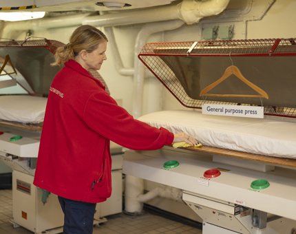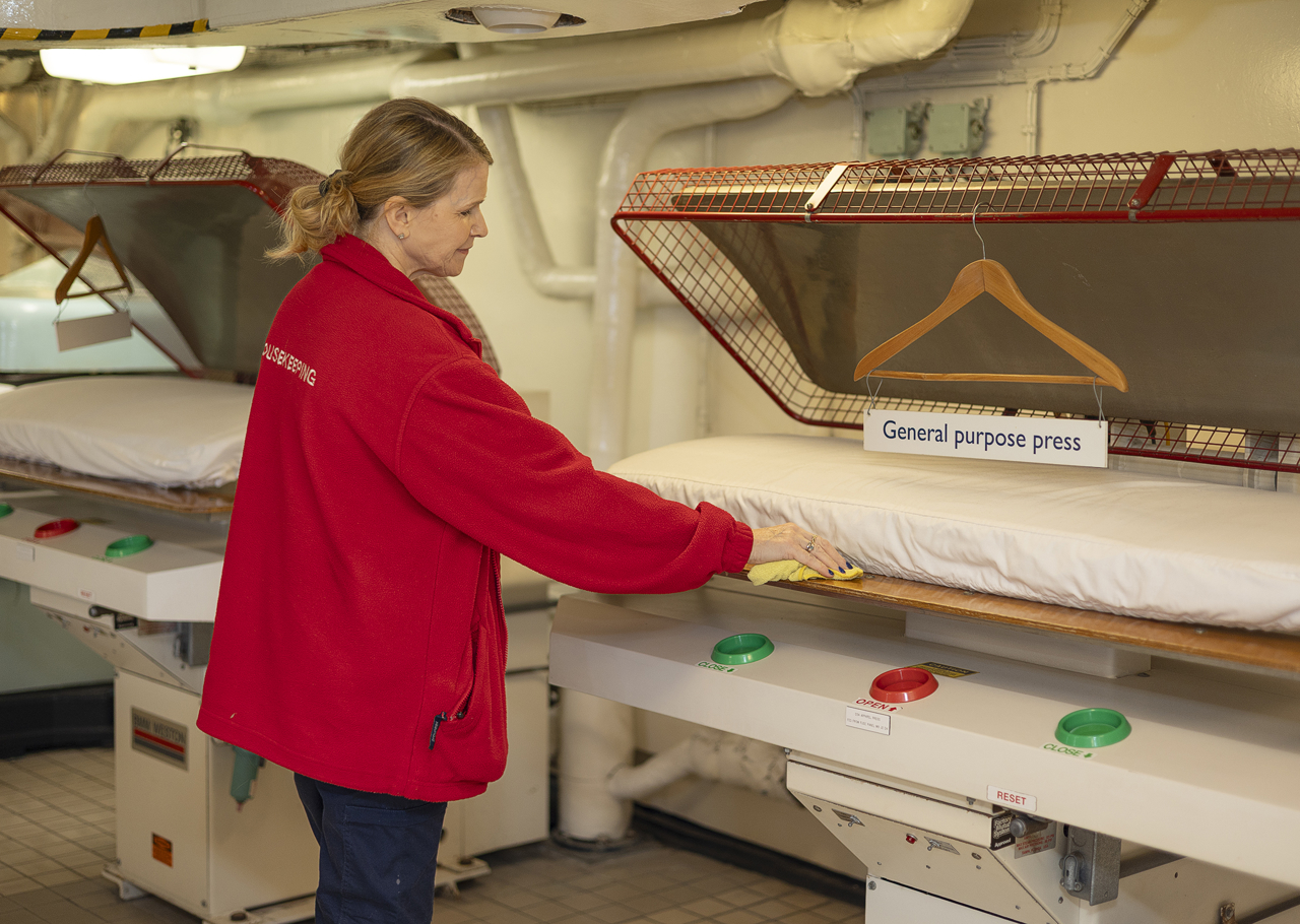 Housekeeper, Lynne, carries out her duties in the Laundry, where during Royal service Royal Yachtsmen could change uniforms up to six times a day.