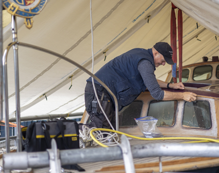 Rab also assisting with work on the Barge, which was used to transport members of the Royal Family to shore.