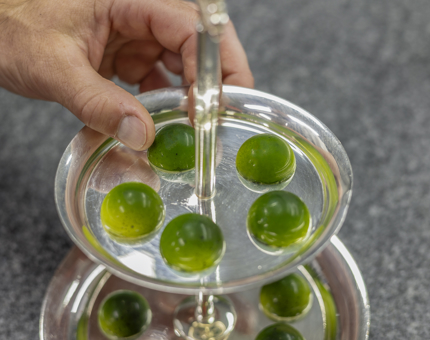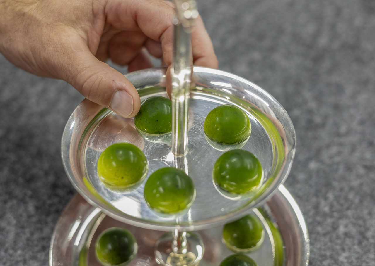 Executive Pastry Chef, Stephen, adding the finishing touch to lime bon bon petits fours, crafted exclusively for a special evening event aboard Britannia.