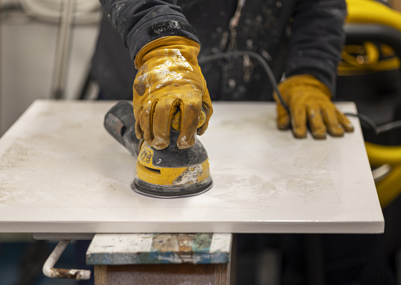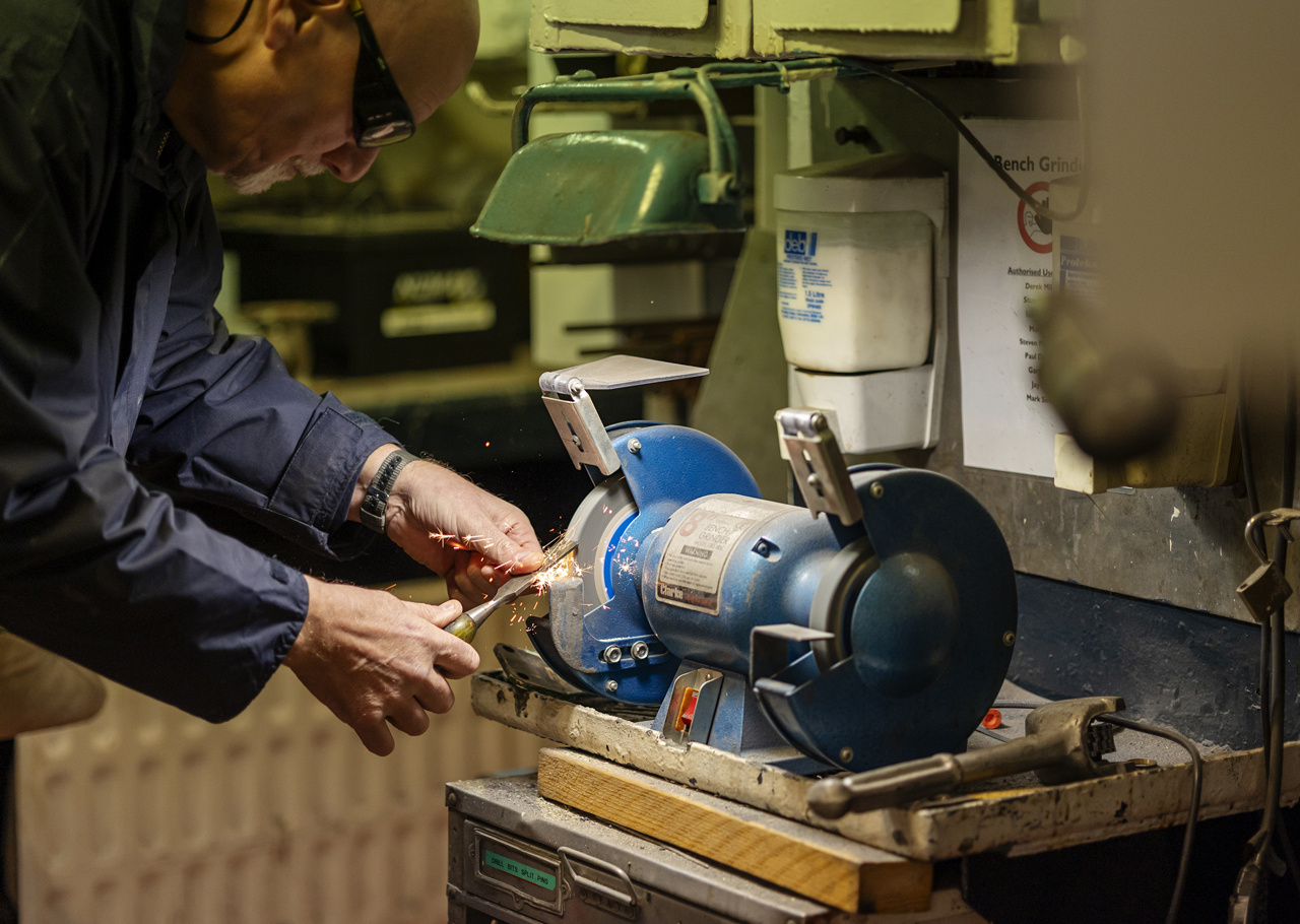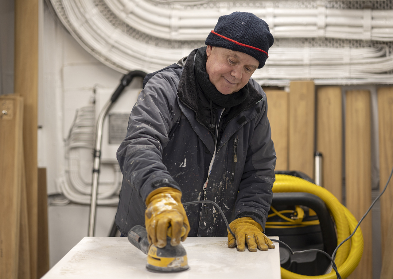 Housekeeper, Aiga, polishing the tea set in the elegant State Drawing Room, where the Royal Family enjoyed relaxing.