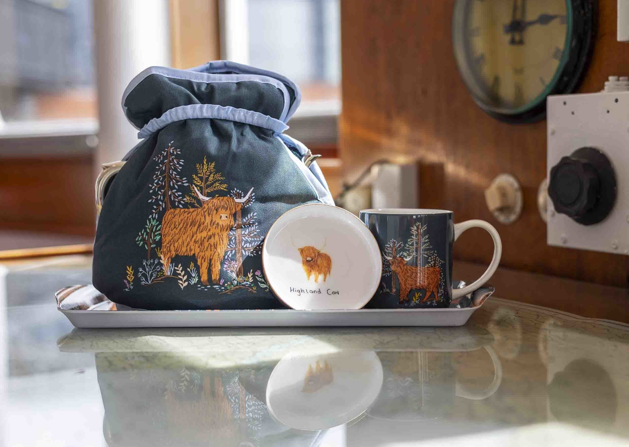 The Shop has a fantastic selection of Scottish themed gifts and souvenirs. Our sweet Highland cow range features a tea cosy, mug and tray.