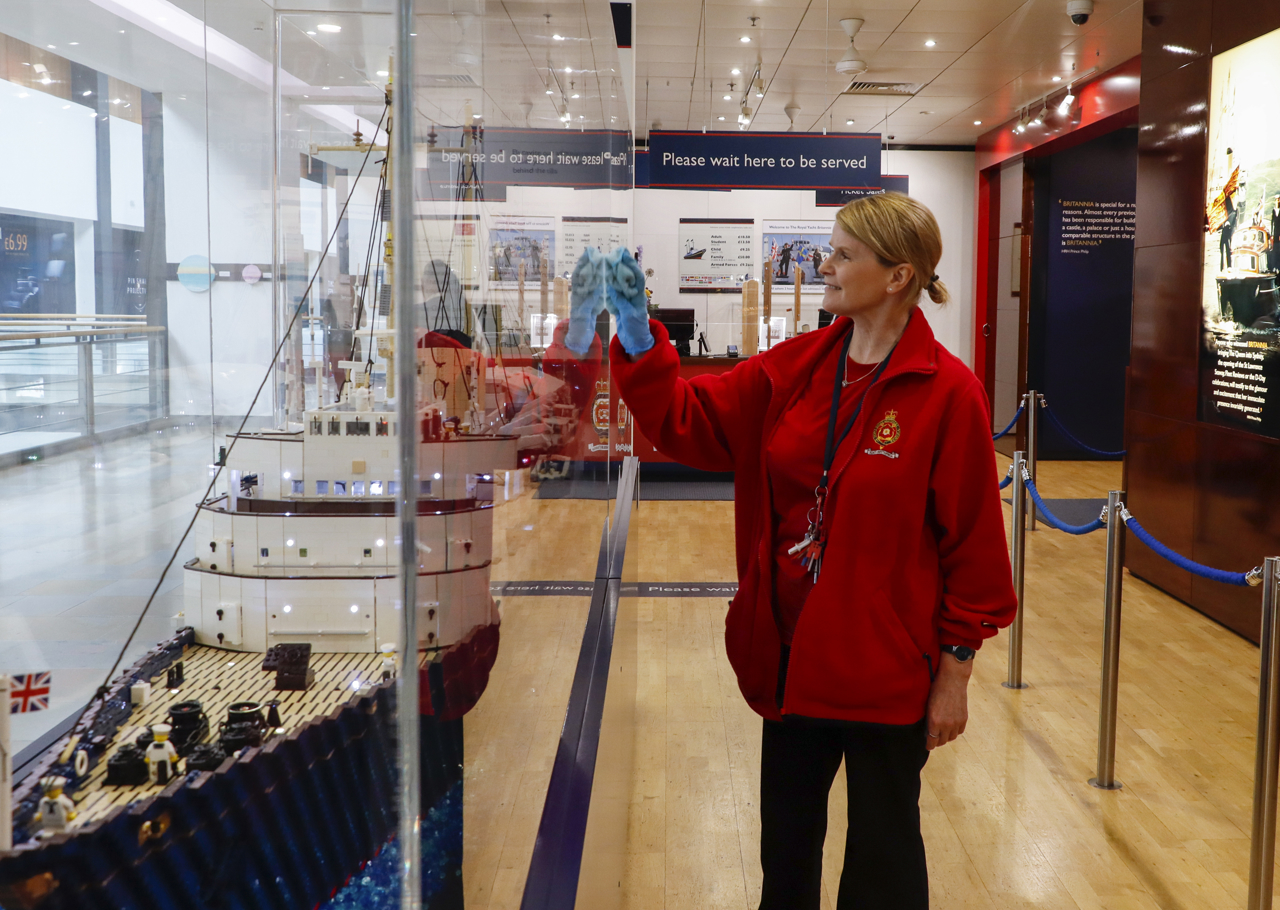 Marvel at the LEGO Britannia model in our Visitor Centre, which is over 11 feet long! Lynne, Housekeeper, polishing the display case ready for visitors to admire.