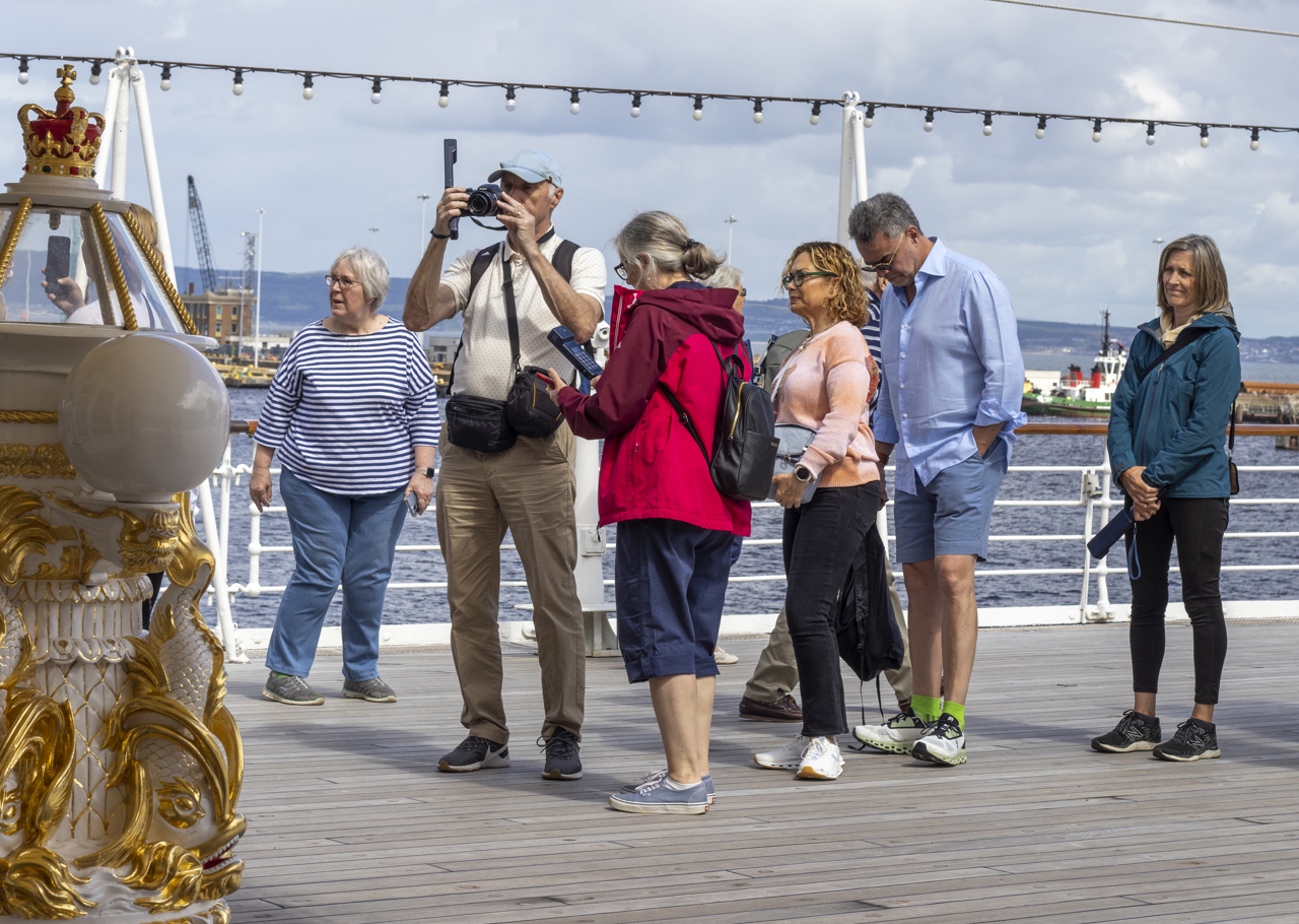 The busy Verandah Deck filled with visitors listening to fascinating stories about Britannia on the audio guided tour.