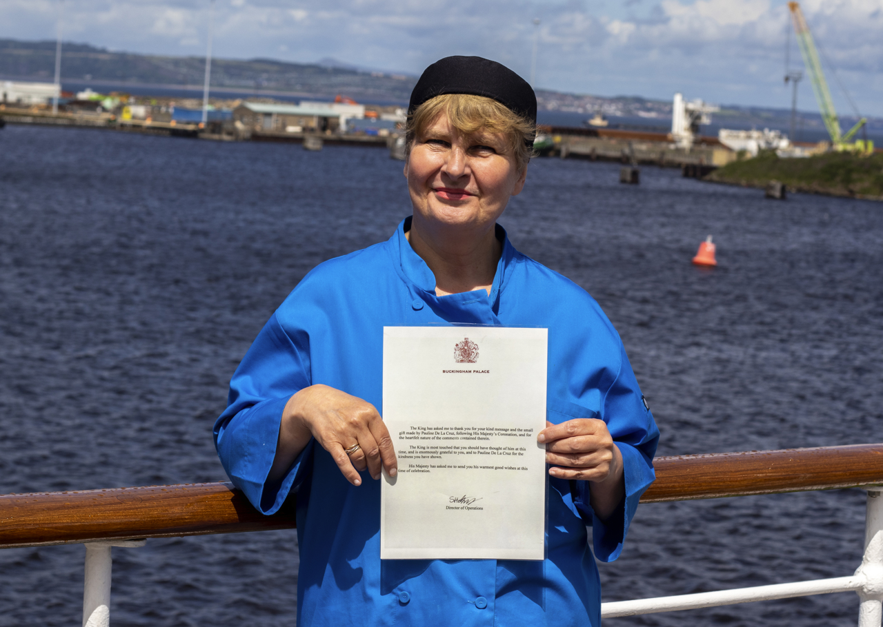 Our onboard confectioner, Poppy, was thrilled to receive a letter from Buckingham Palace thanking her for the gift of a box of fudge sent to The King on the occasion of His Majesty's Coronation.