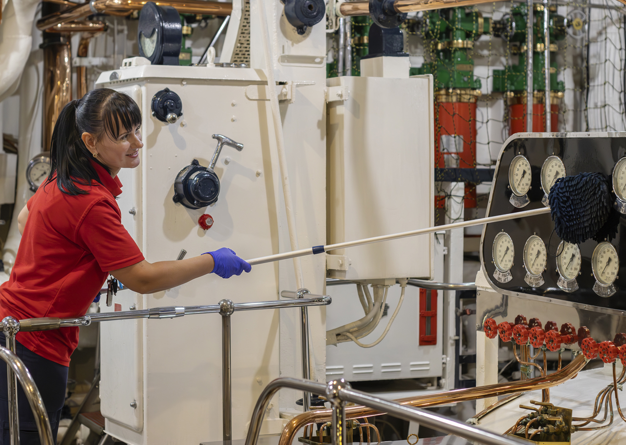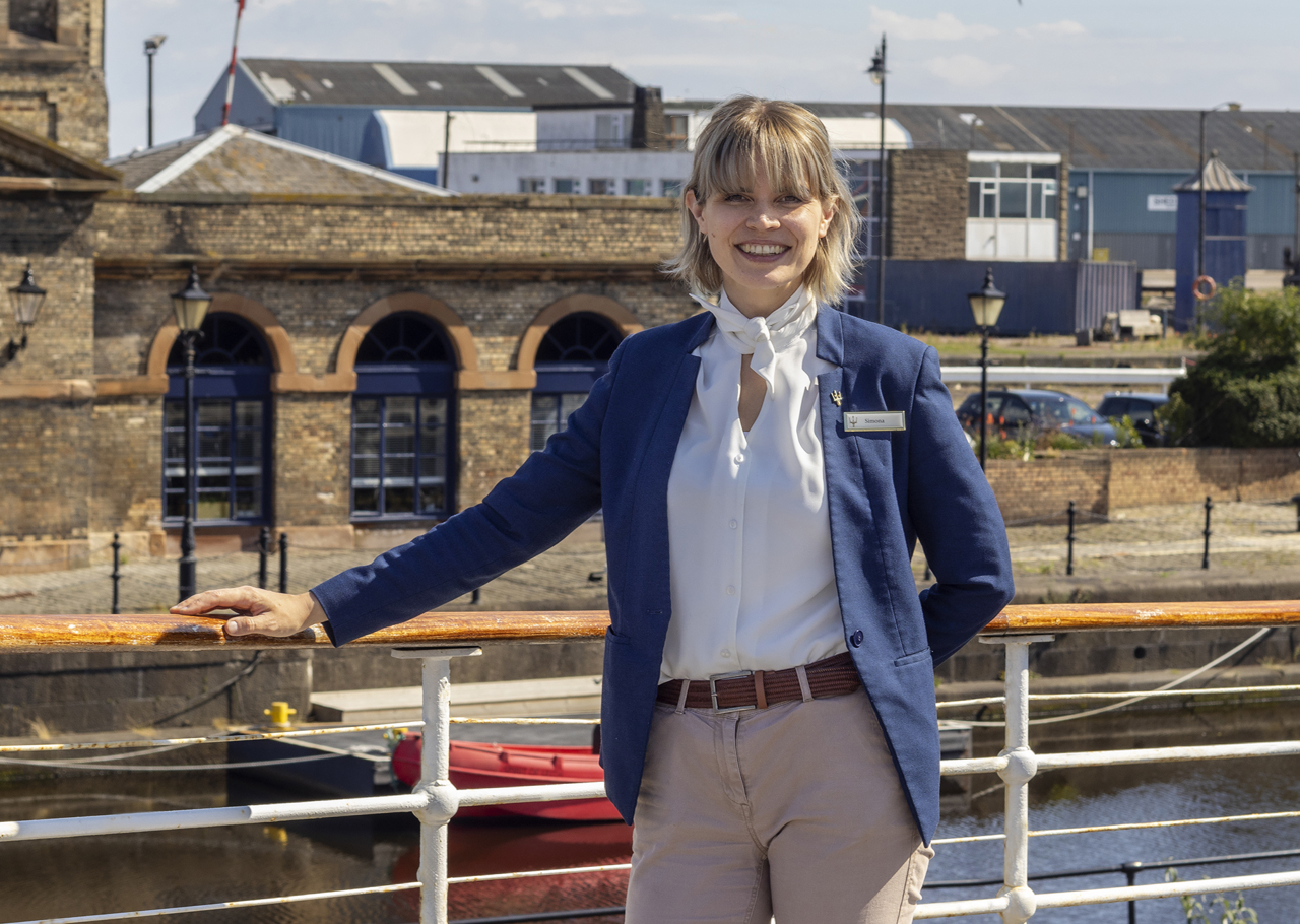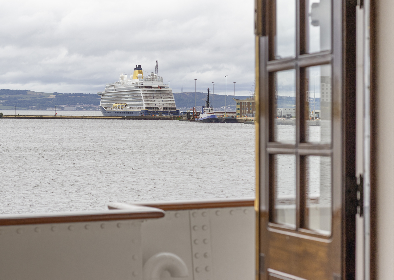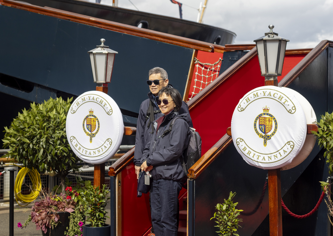 A visitor enjoying the complimentary audio guided tour, which tells the fascinating story of Queen Elizabeth II's former Royal Yacht.