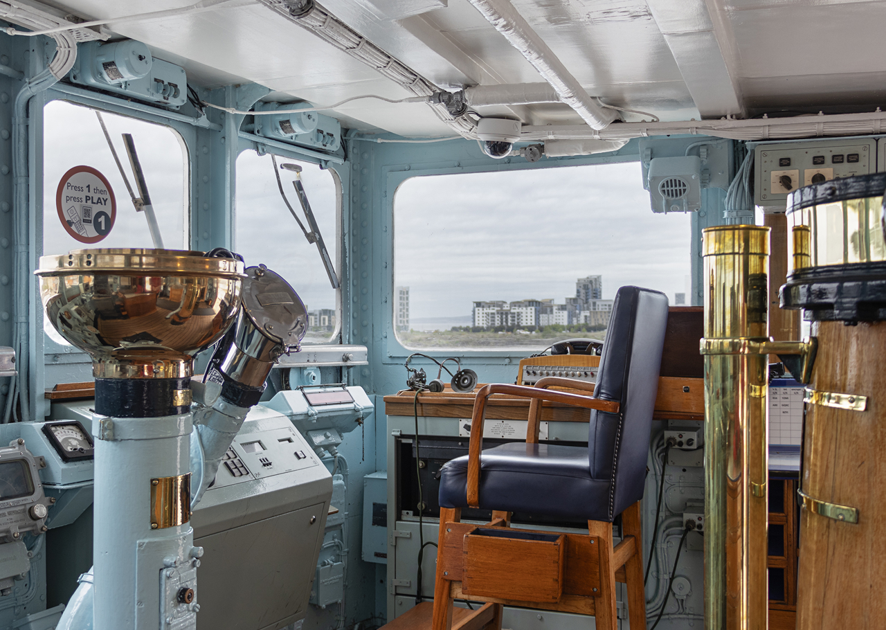 A view of the Bridge, at the top of the Yacht, where Britannia was commanded as it sailed across the globe.